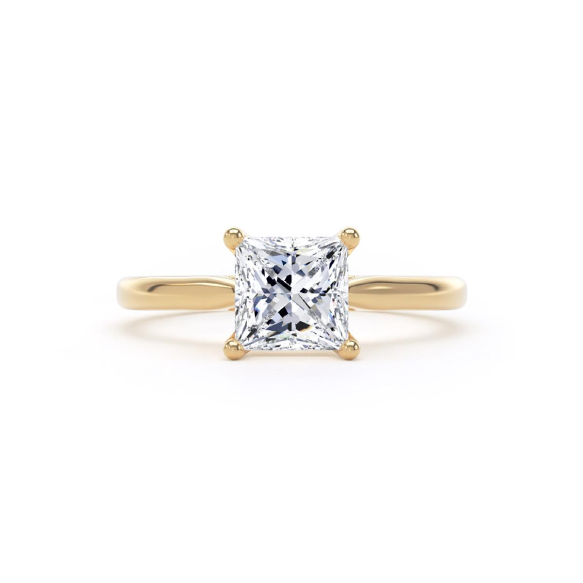 This 18ct Yellow Gold engagement ring is set with a 0.80ct princess cut diamond. The centre stone is graded I colour and SI1 clarity, with an excellent polish. Its clean geometry and warm gold setting create a refined profile suited to daily wear. A considered design defined by proportion and clarity.