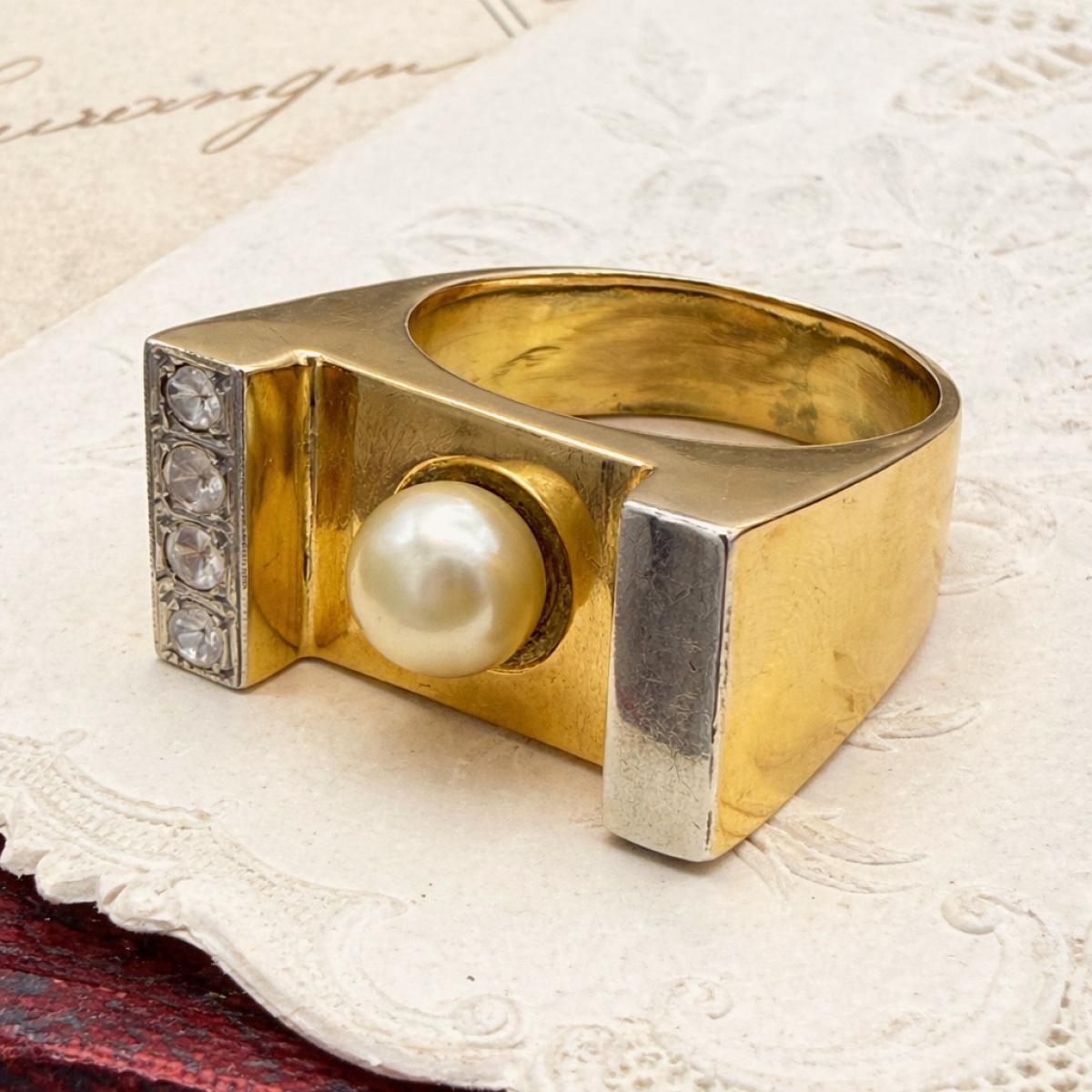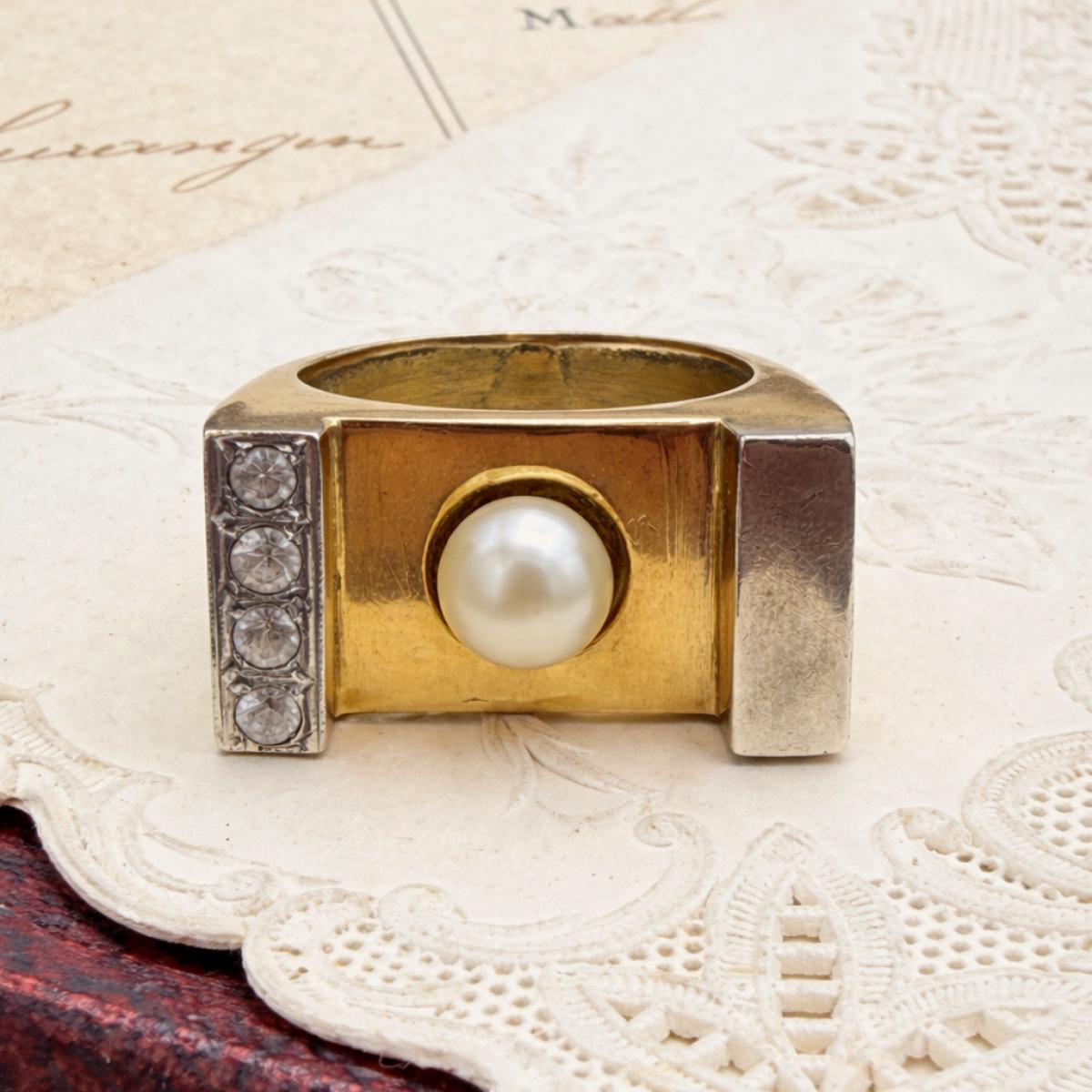 1930s Pearl and Diamond Odeon Ring