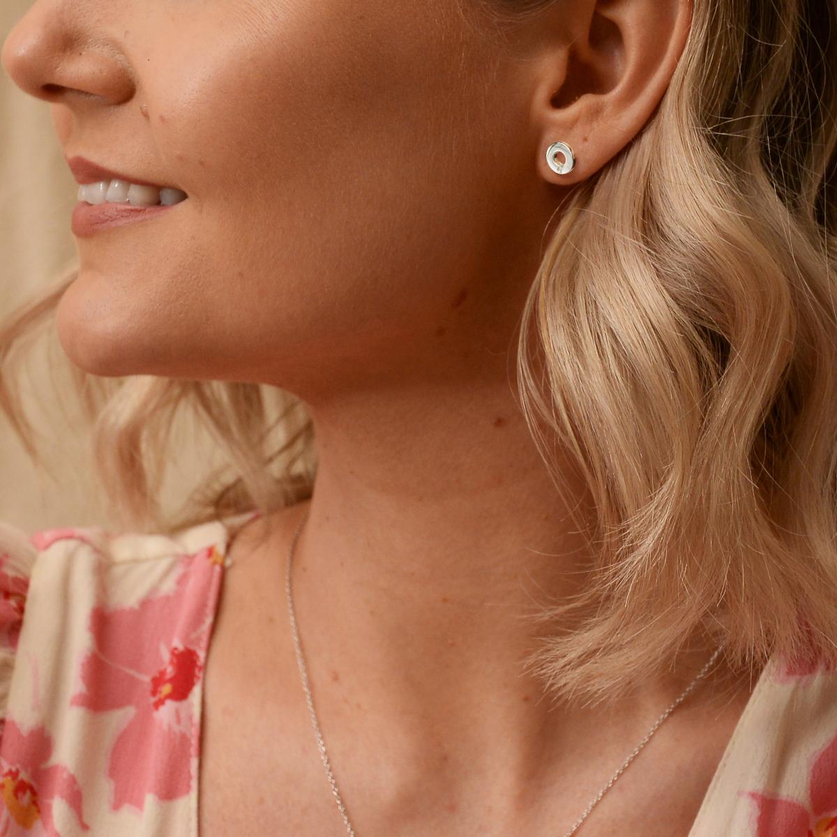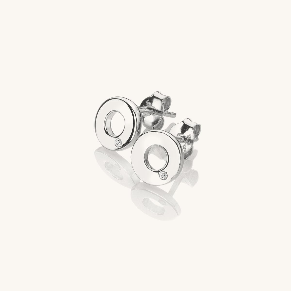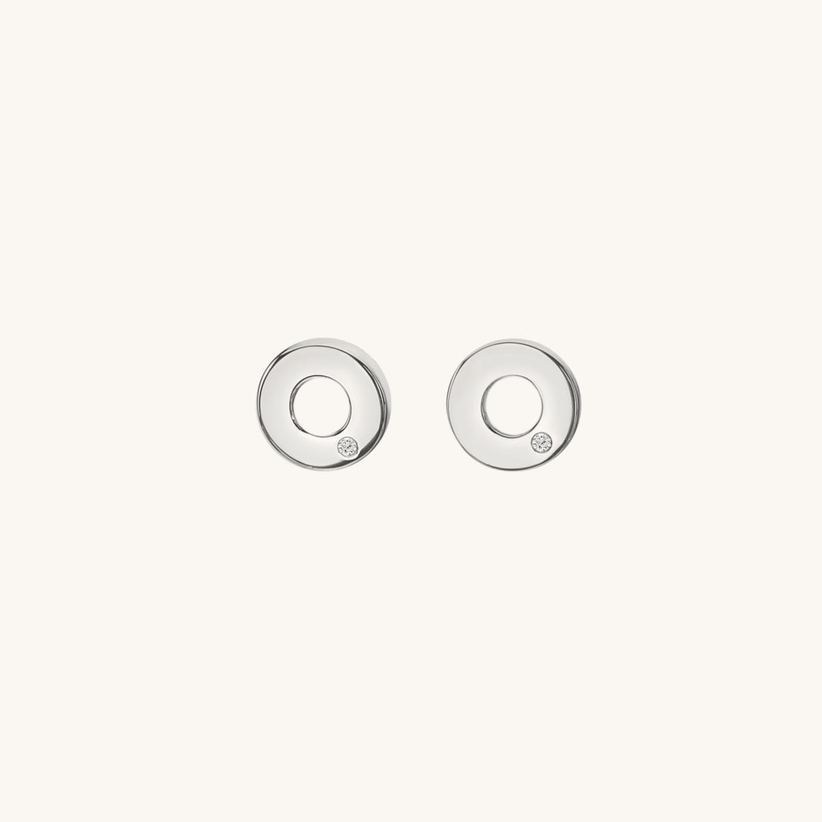 From our Diamond Amulets Collection: Simple and understated these 9mm x 9mm circle earrings are beautifully crafted in sterling silver and adorned with two real diamonds