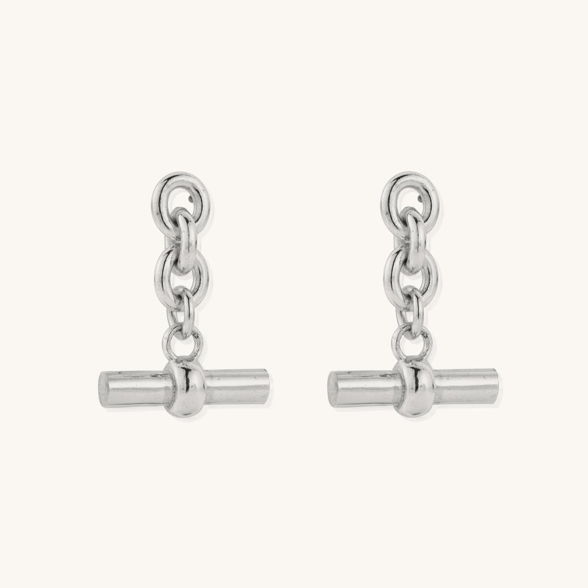 A modern take on a classic silhouette, these statement drop earrings feature three anchor chain links and a T-bar detail. Bold yet elegant, they bring a touch of contemporary edge and refinement to both day and evening looks.