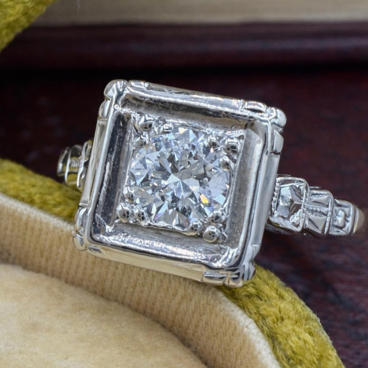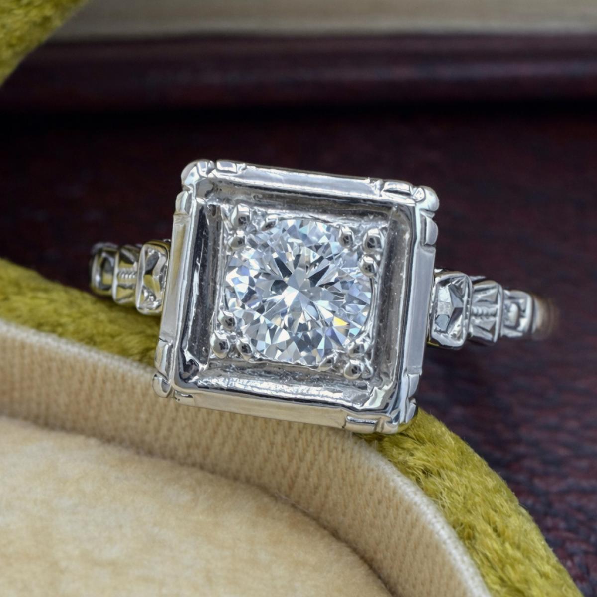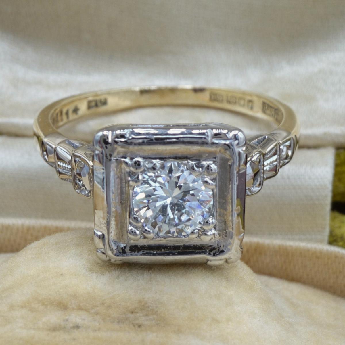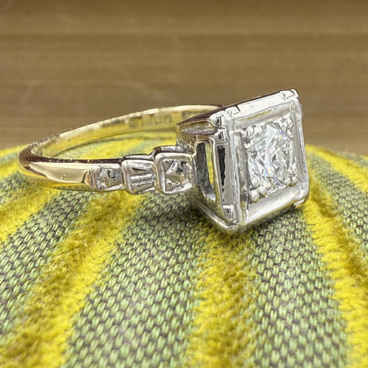 Art Deco Bezel Set Diamond Ring With Step Shoulders