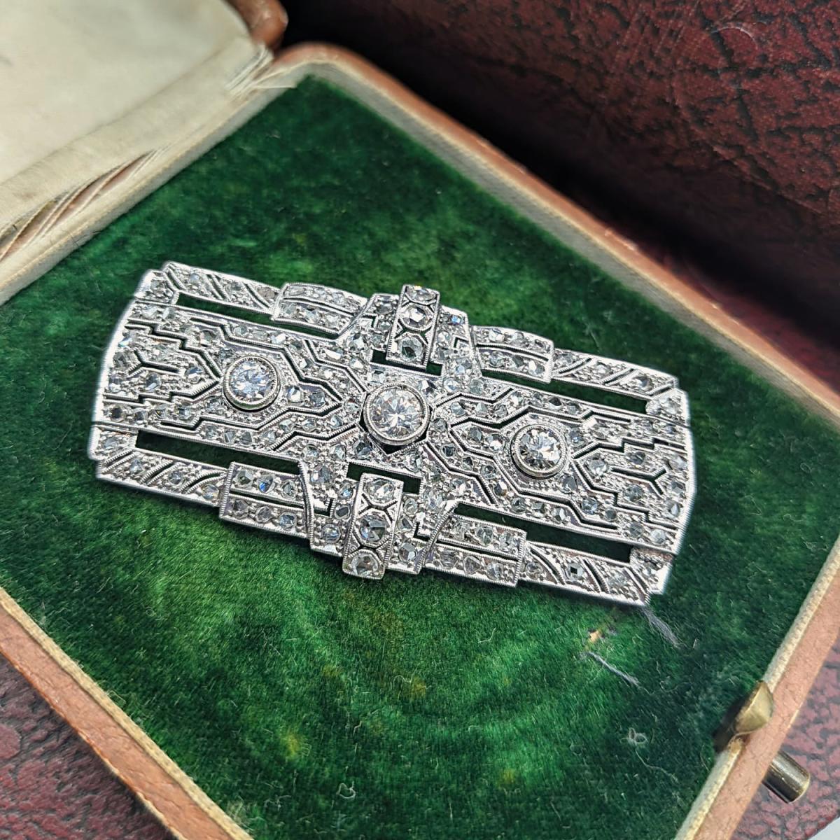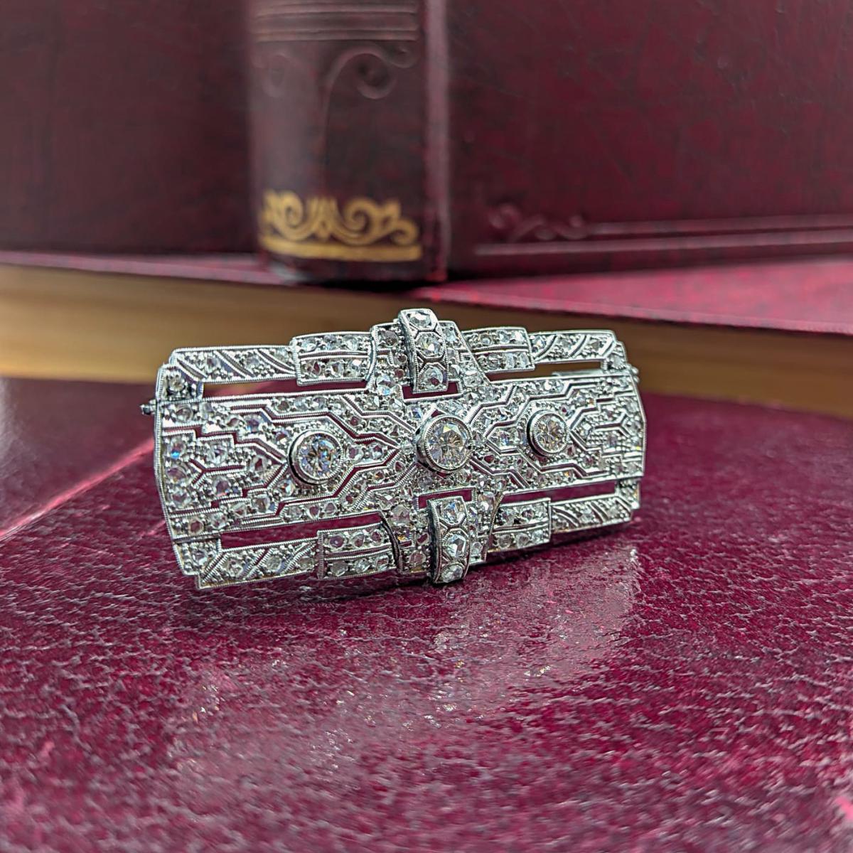 A Fine Art Deco Plaque Brooch Set with Diamonds
