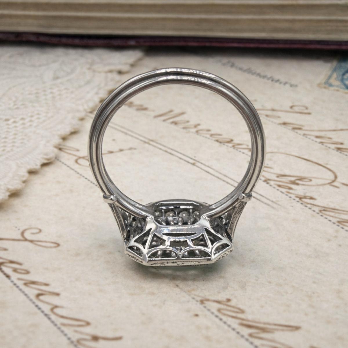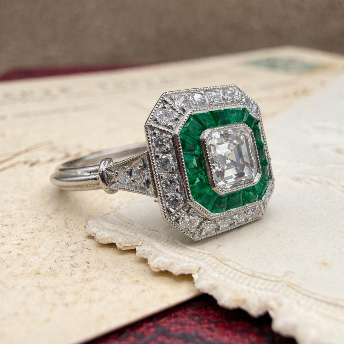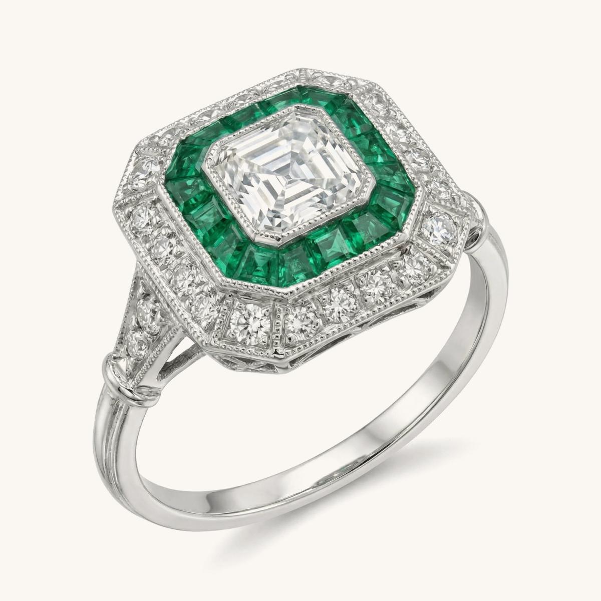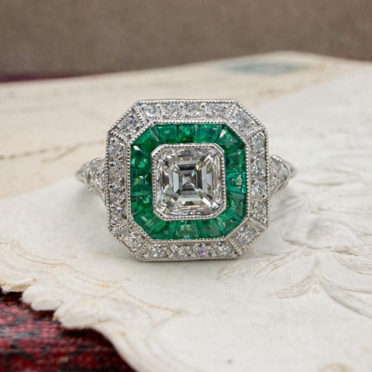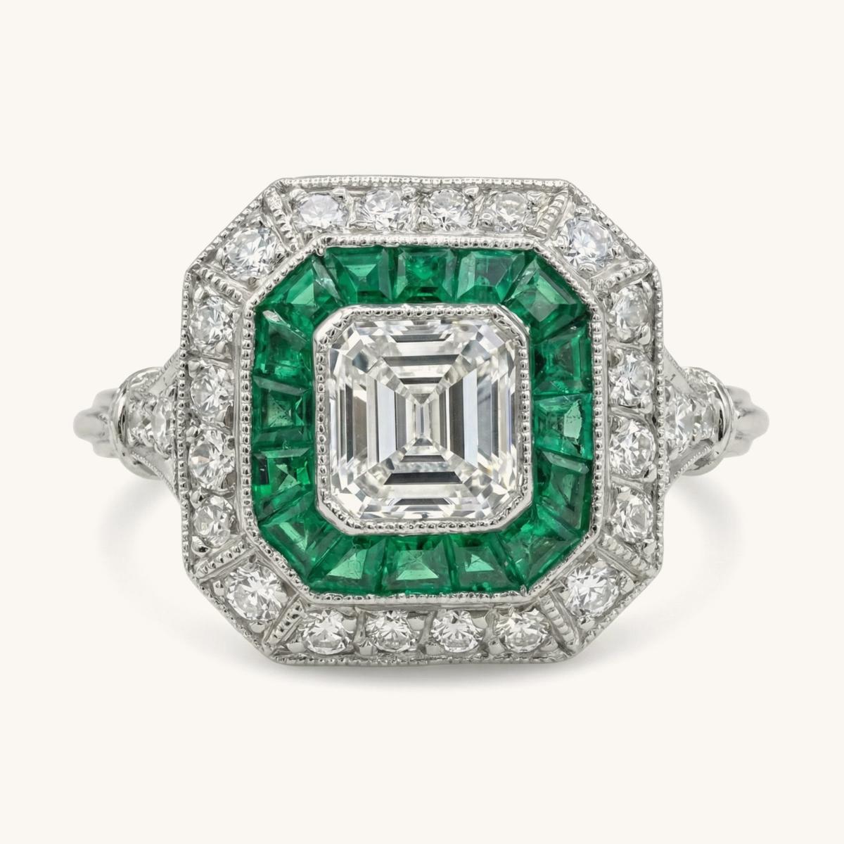 Art Deco Emerald and Diamond Target Cluster Ring