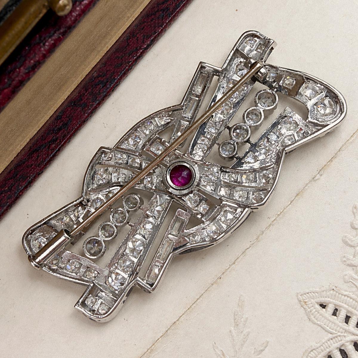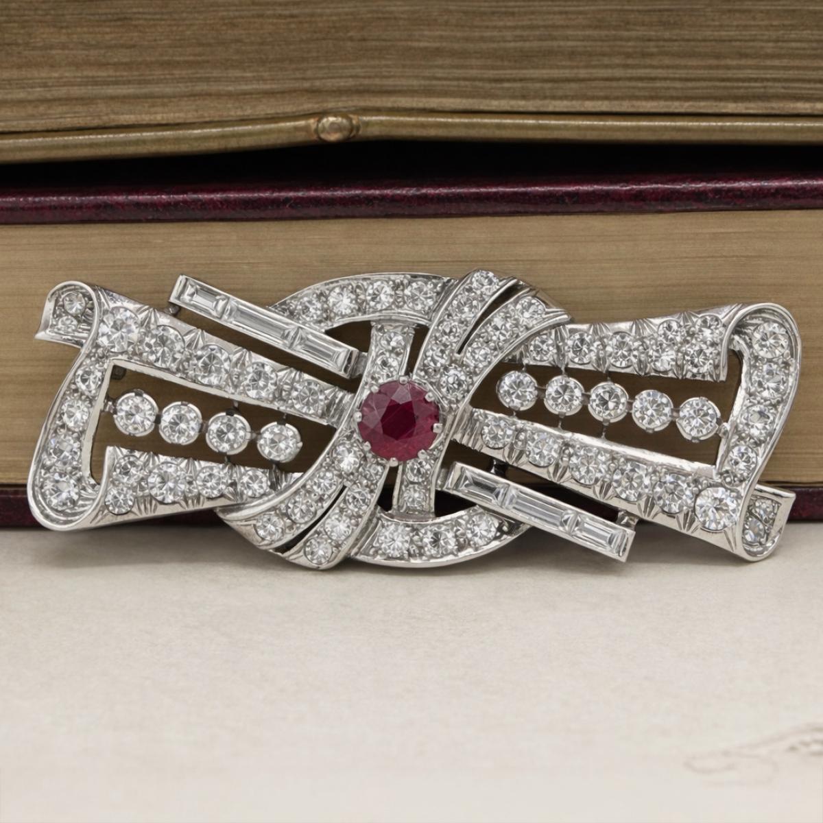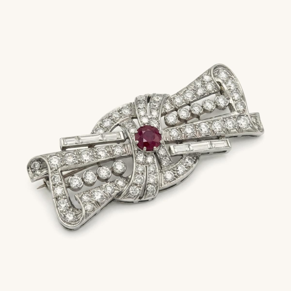 Art Deco Ruby and Diamond Brooch