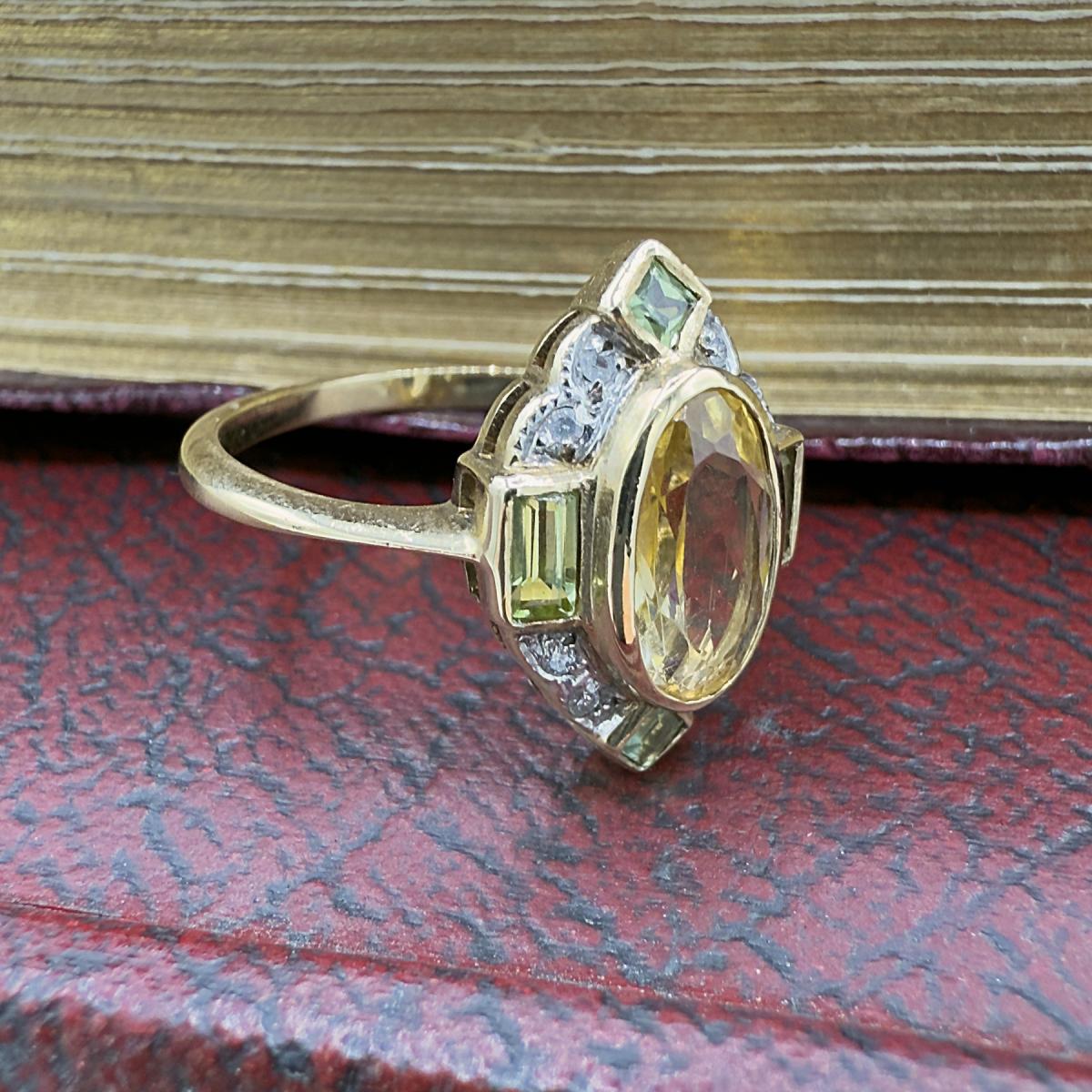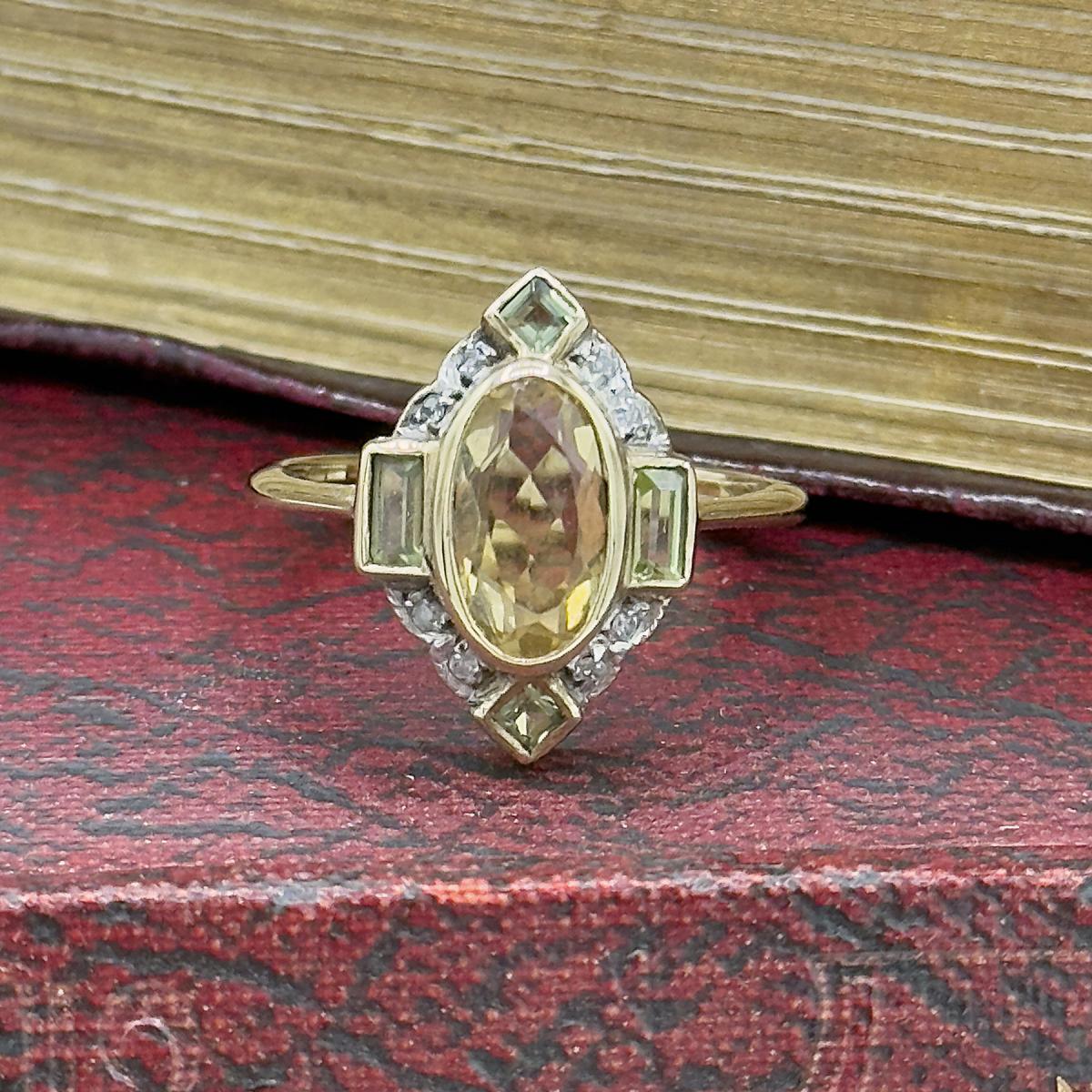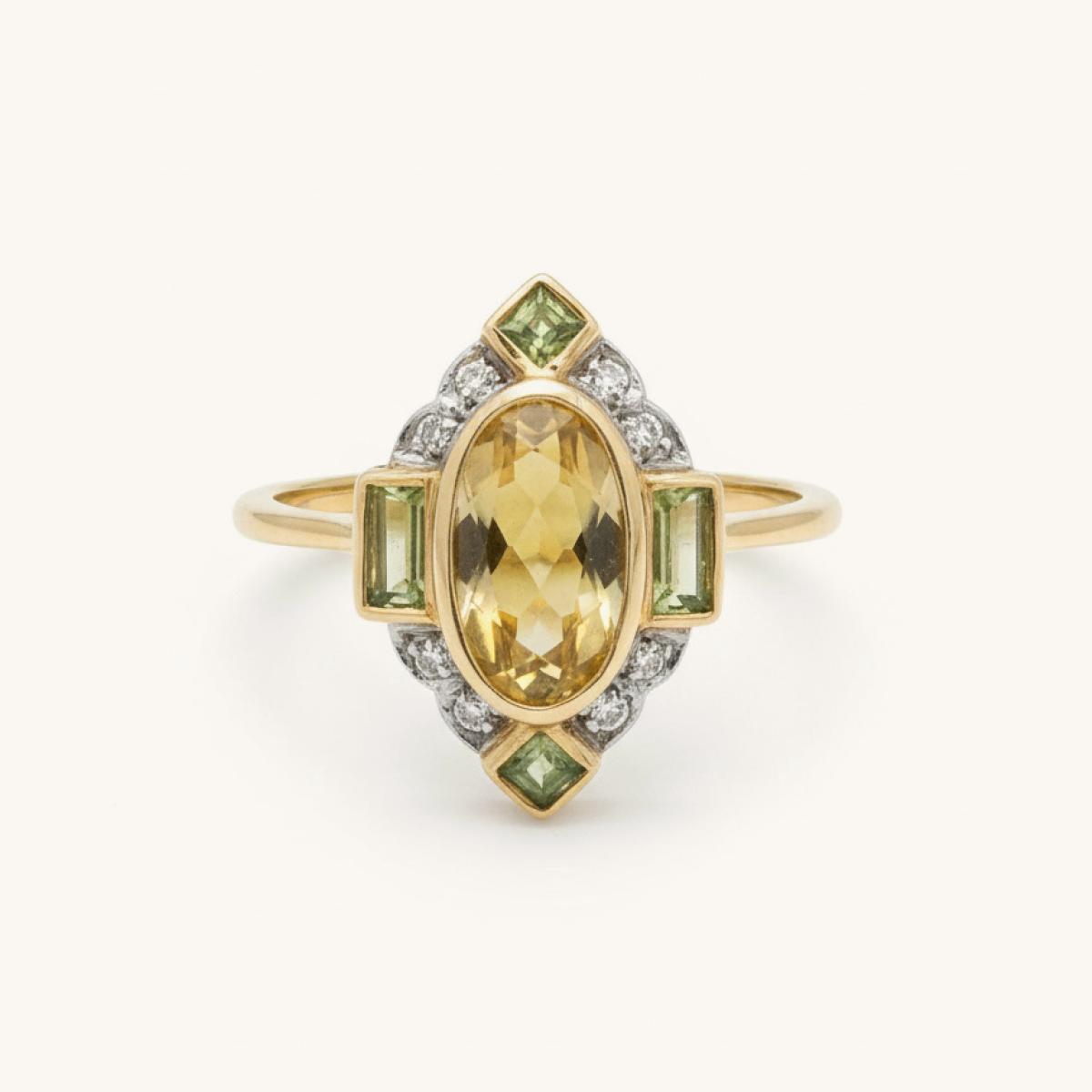 Art Deco Style Citrine, Peridot and Diamond Ring