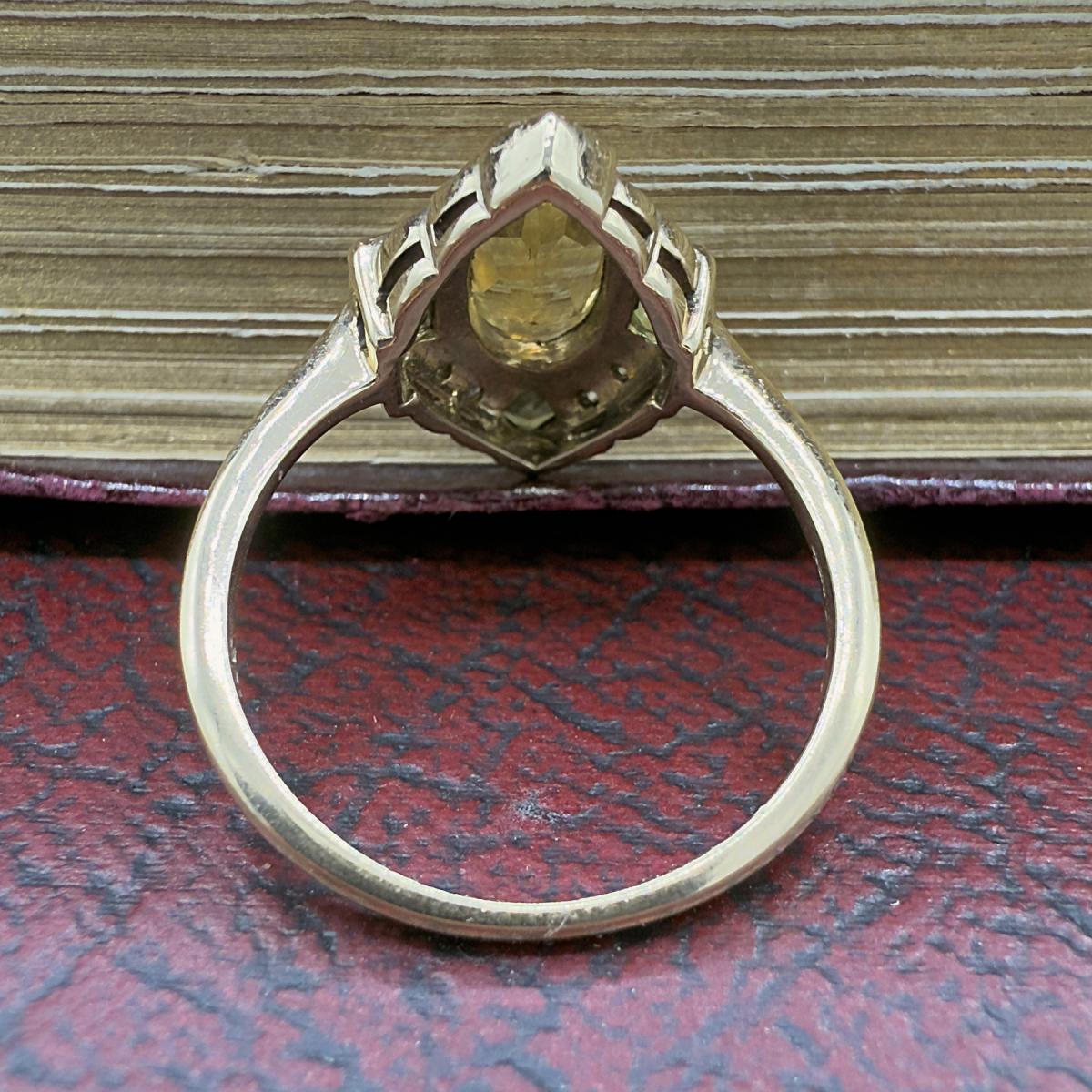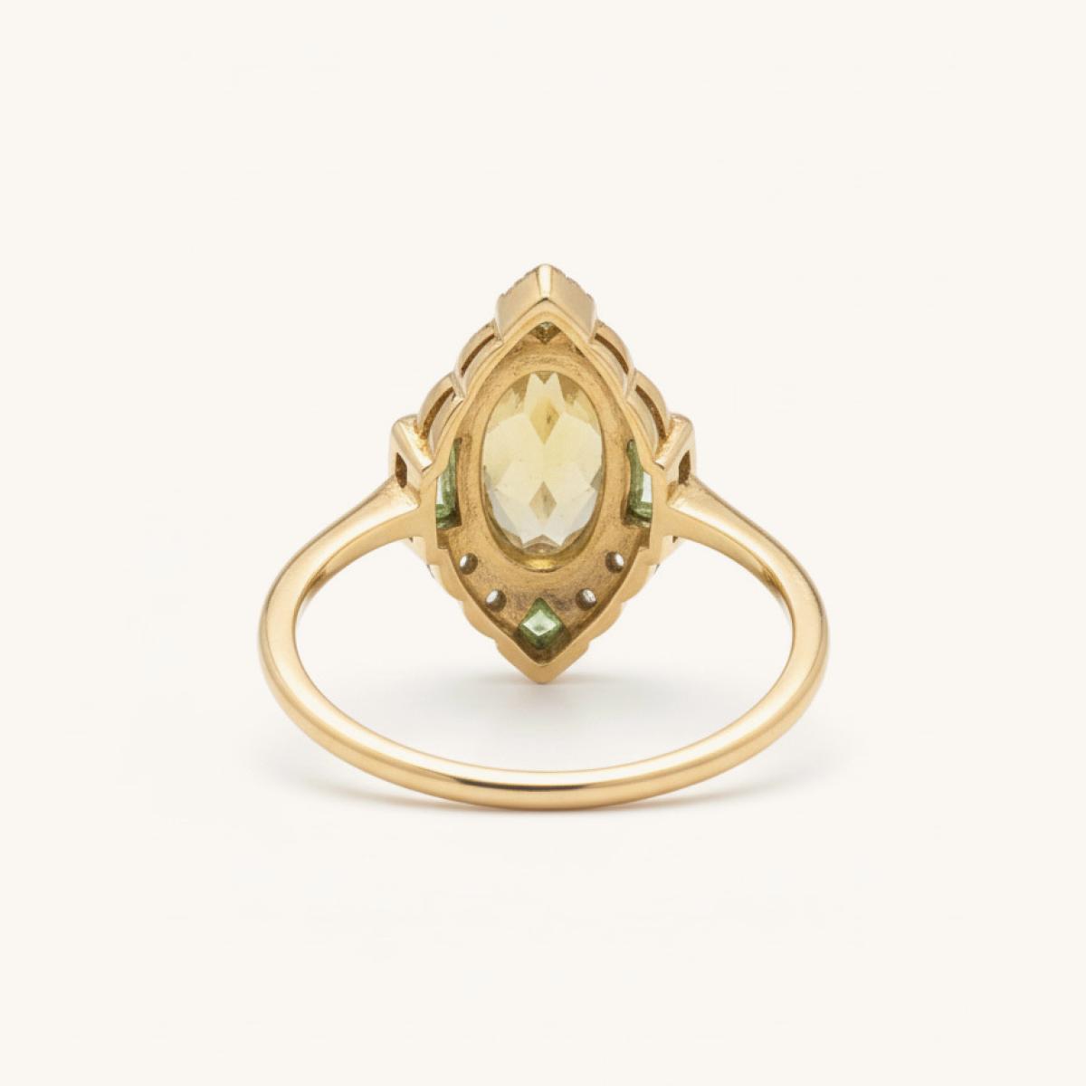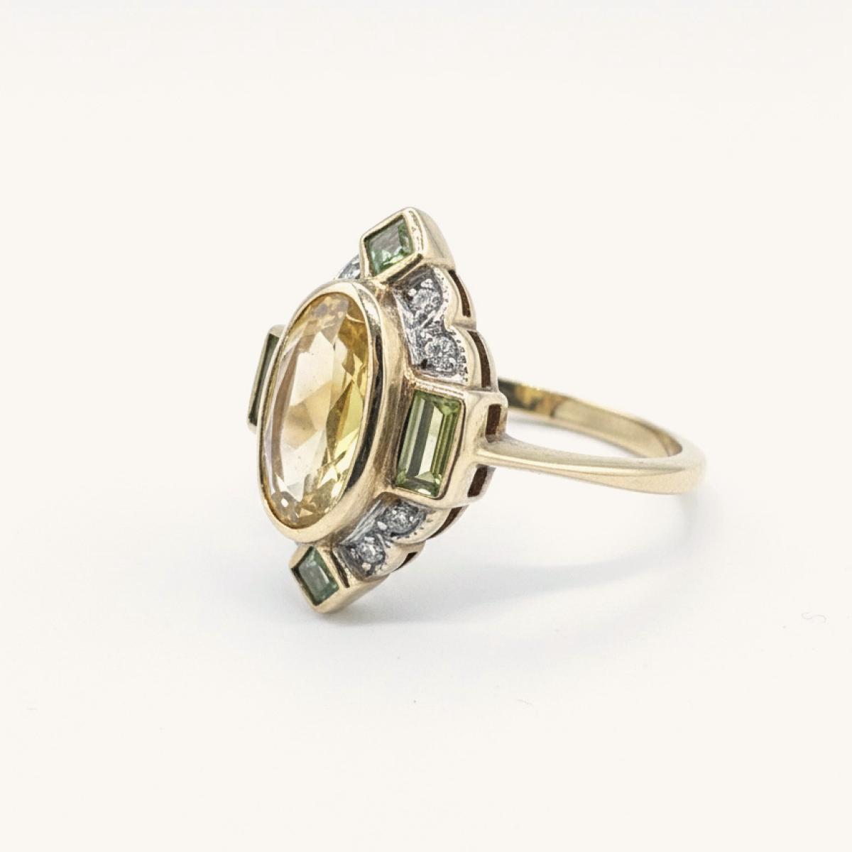 Art Deco Style Citrine, Peridot and Diamond Ring