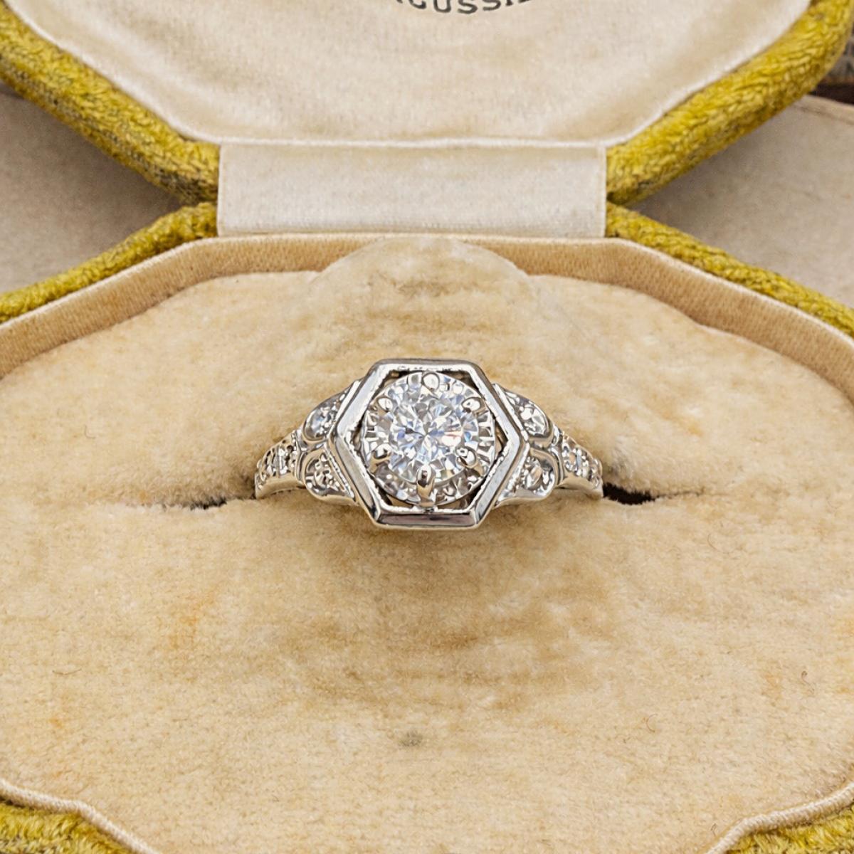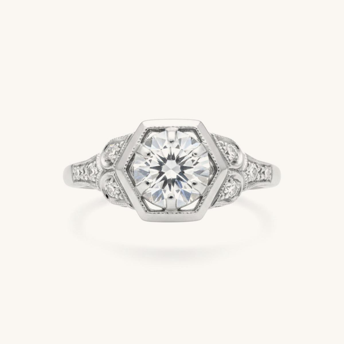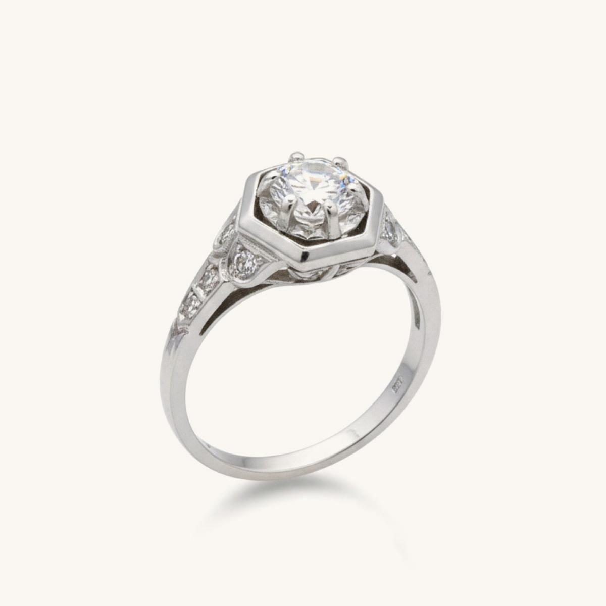 Art Deco Style Diamond Ring With Hexagonal Setting