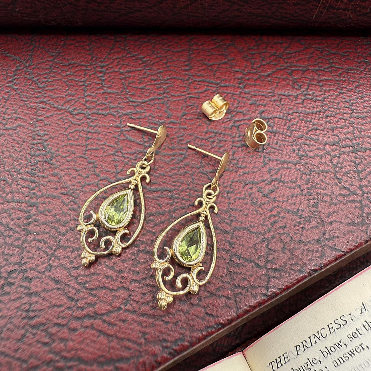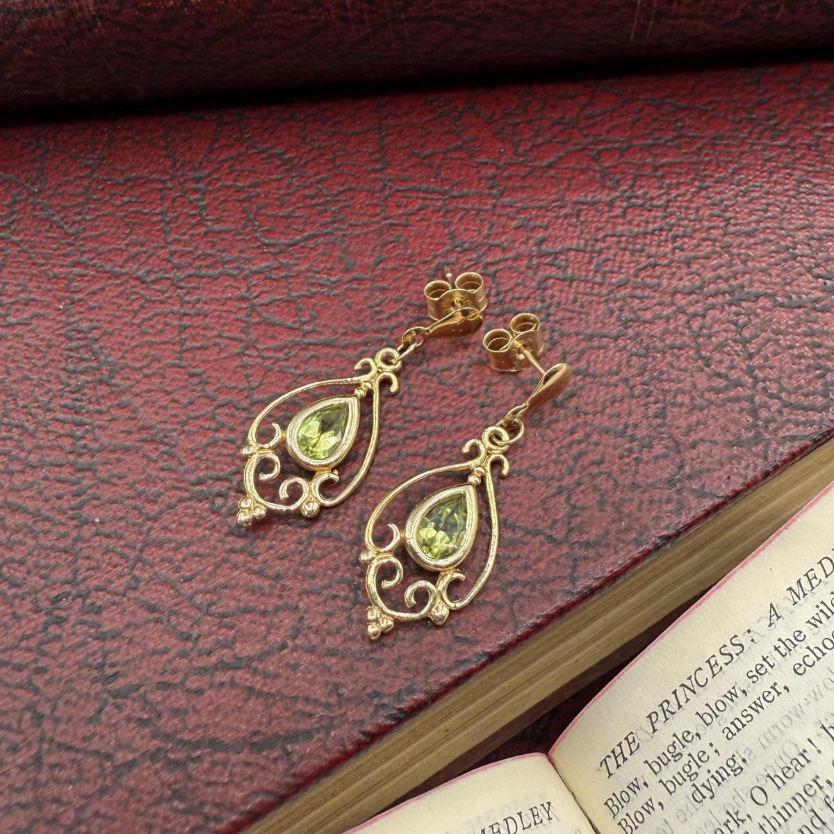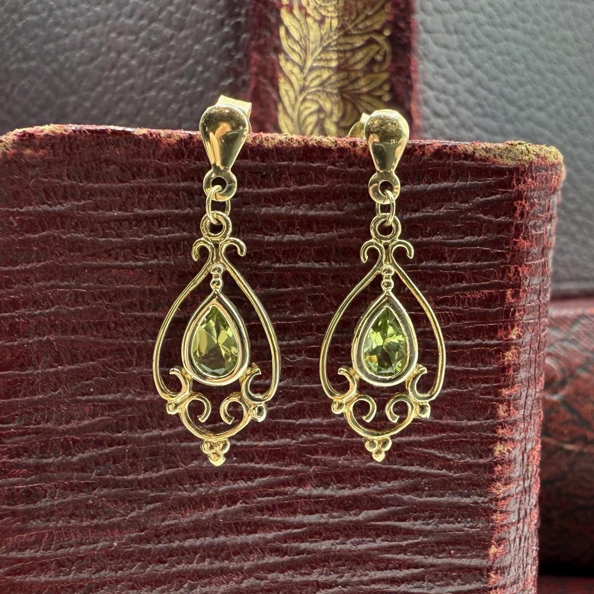 Art Nouveau Style Peridot Drop Earrings