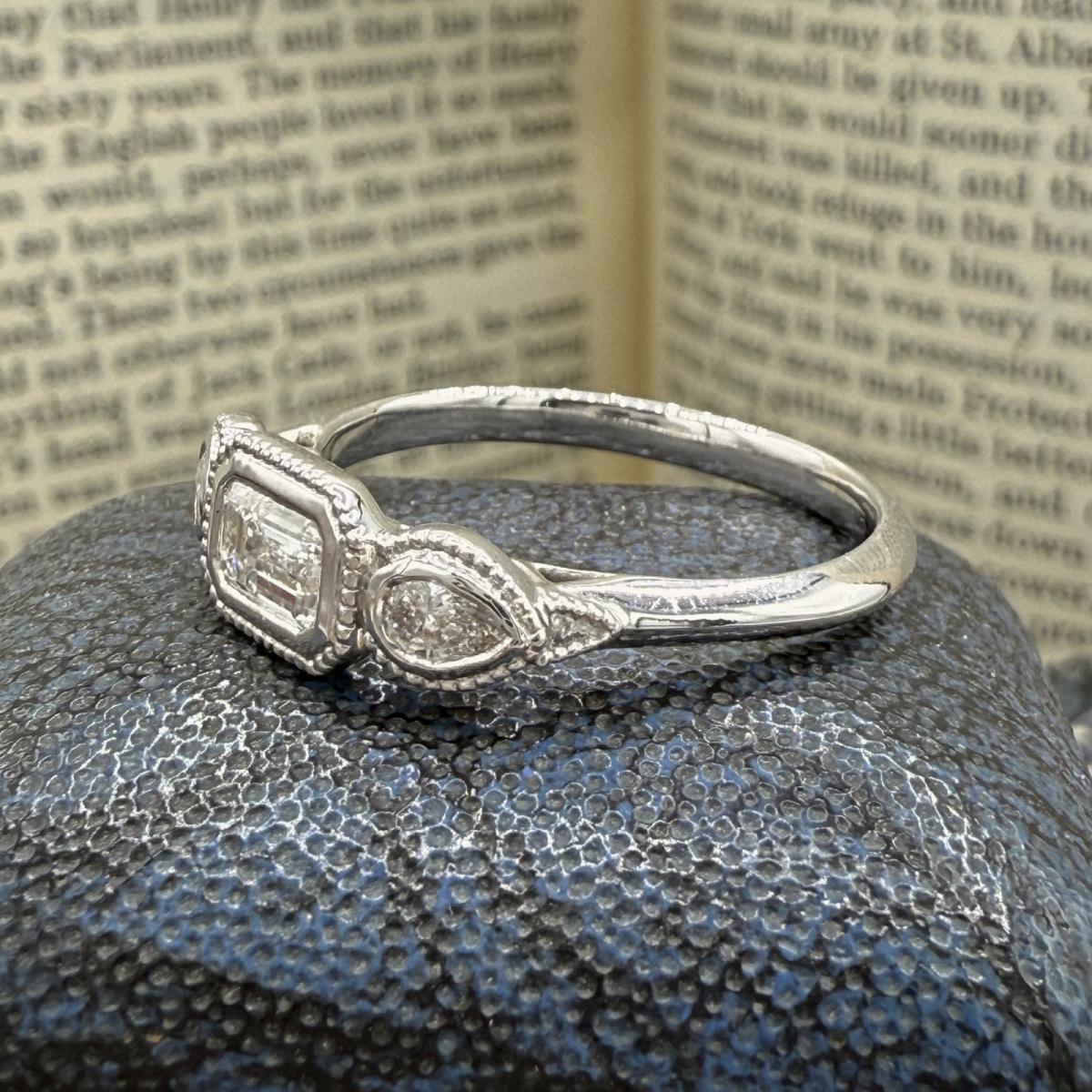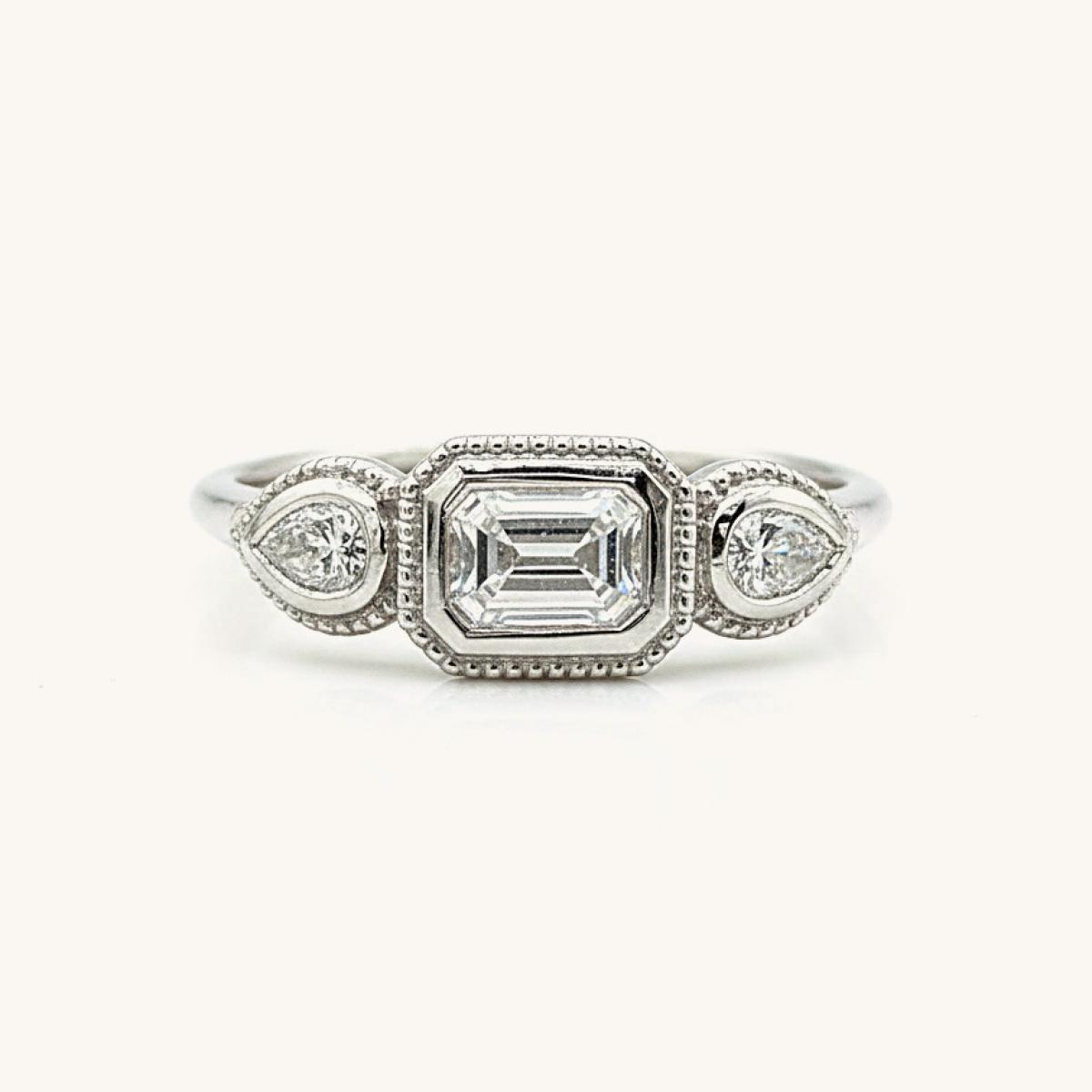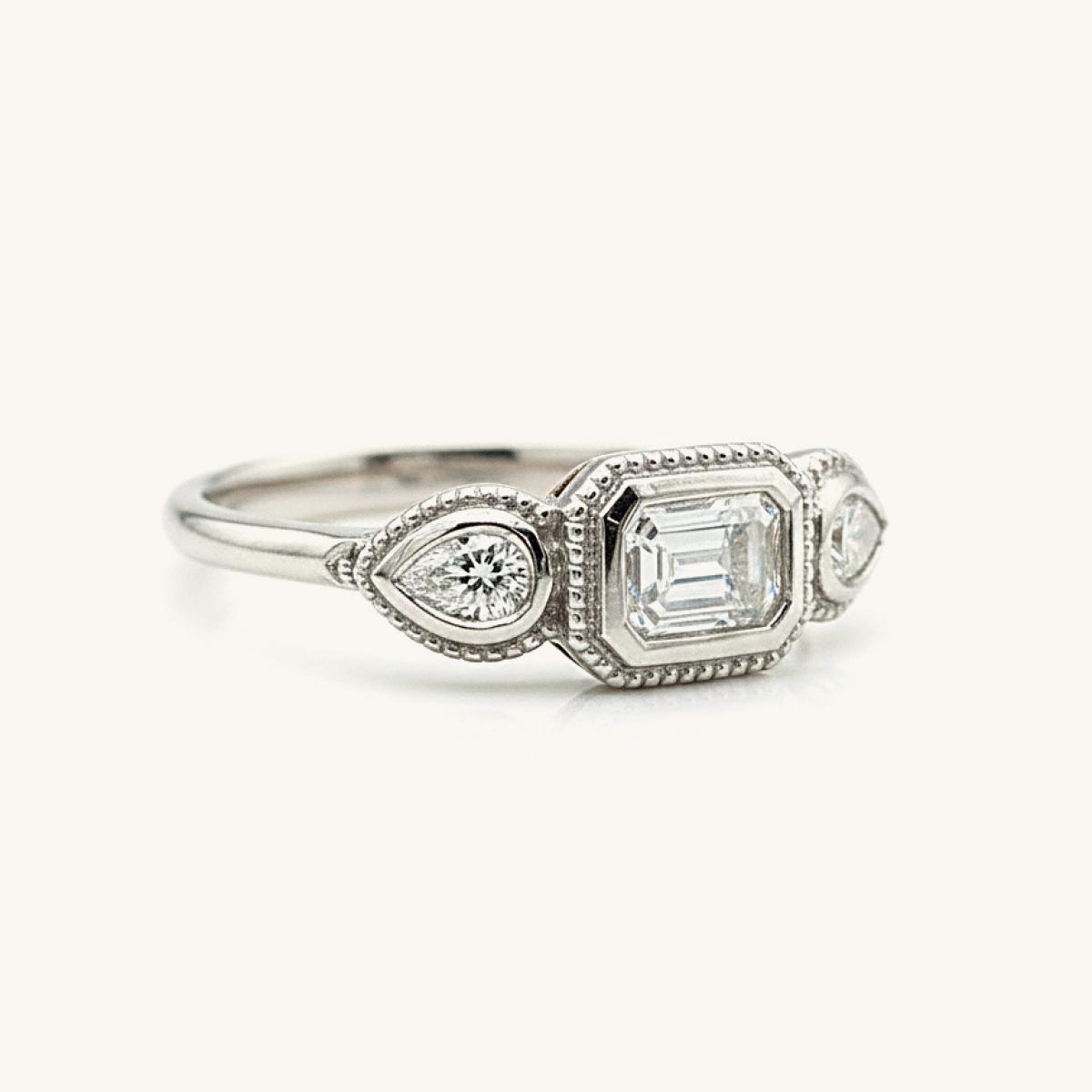 Bezel Set Trilogy Diamond Ring With Milgrain Detail