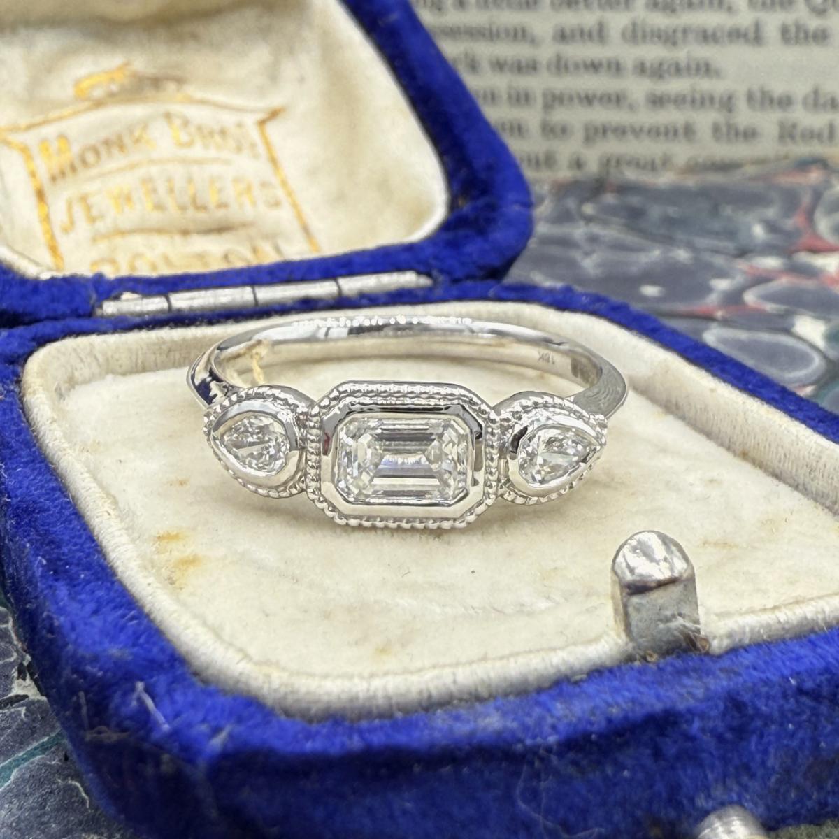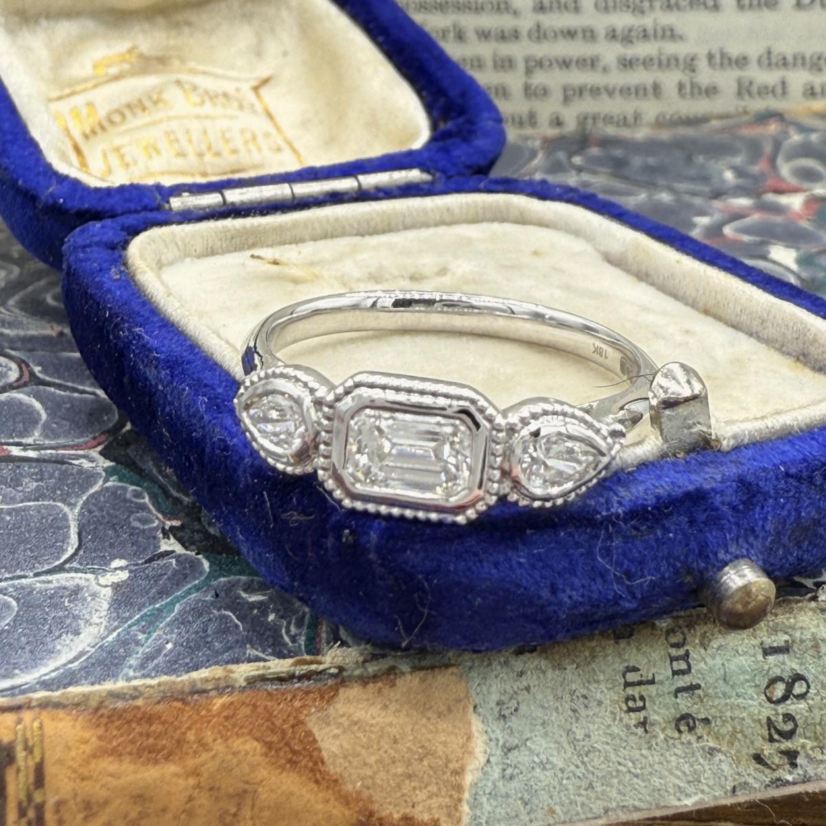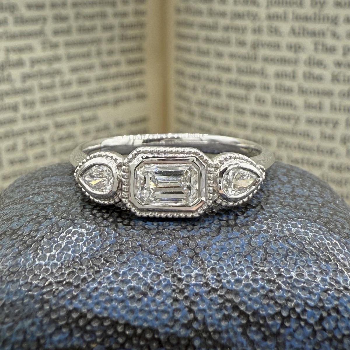 Bezel Set Trilogy Diamond Ring With Milgrain Detail