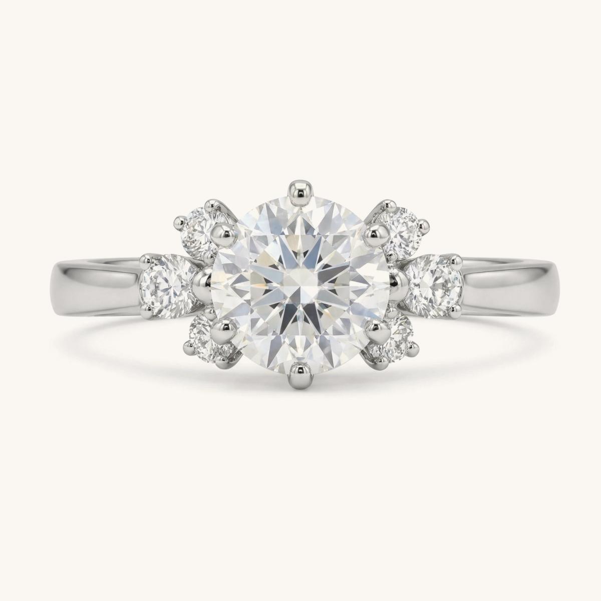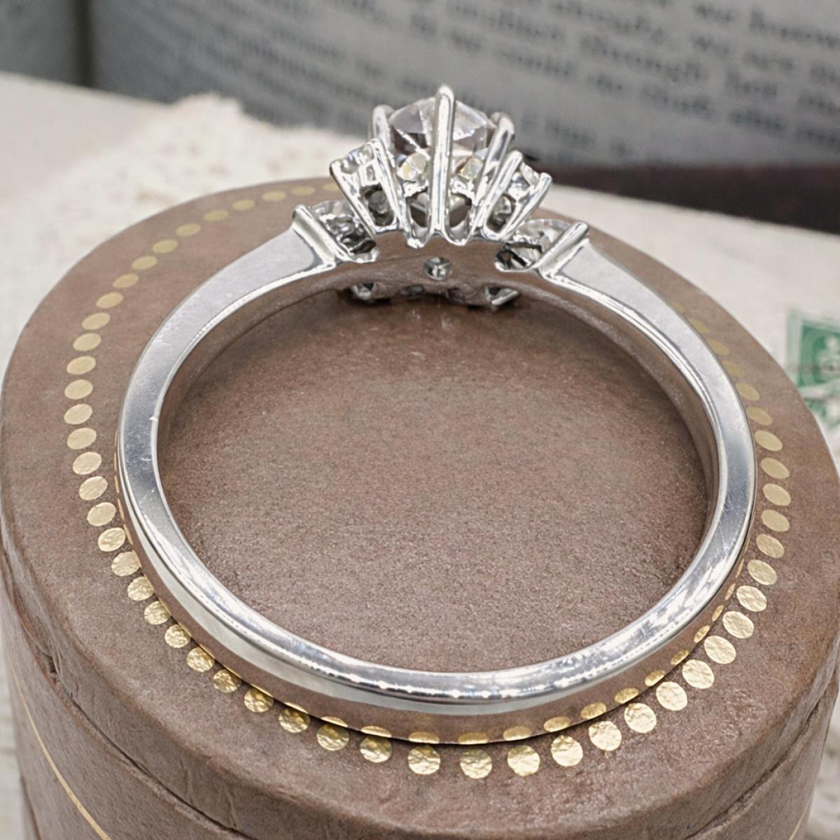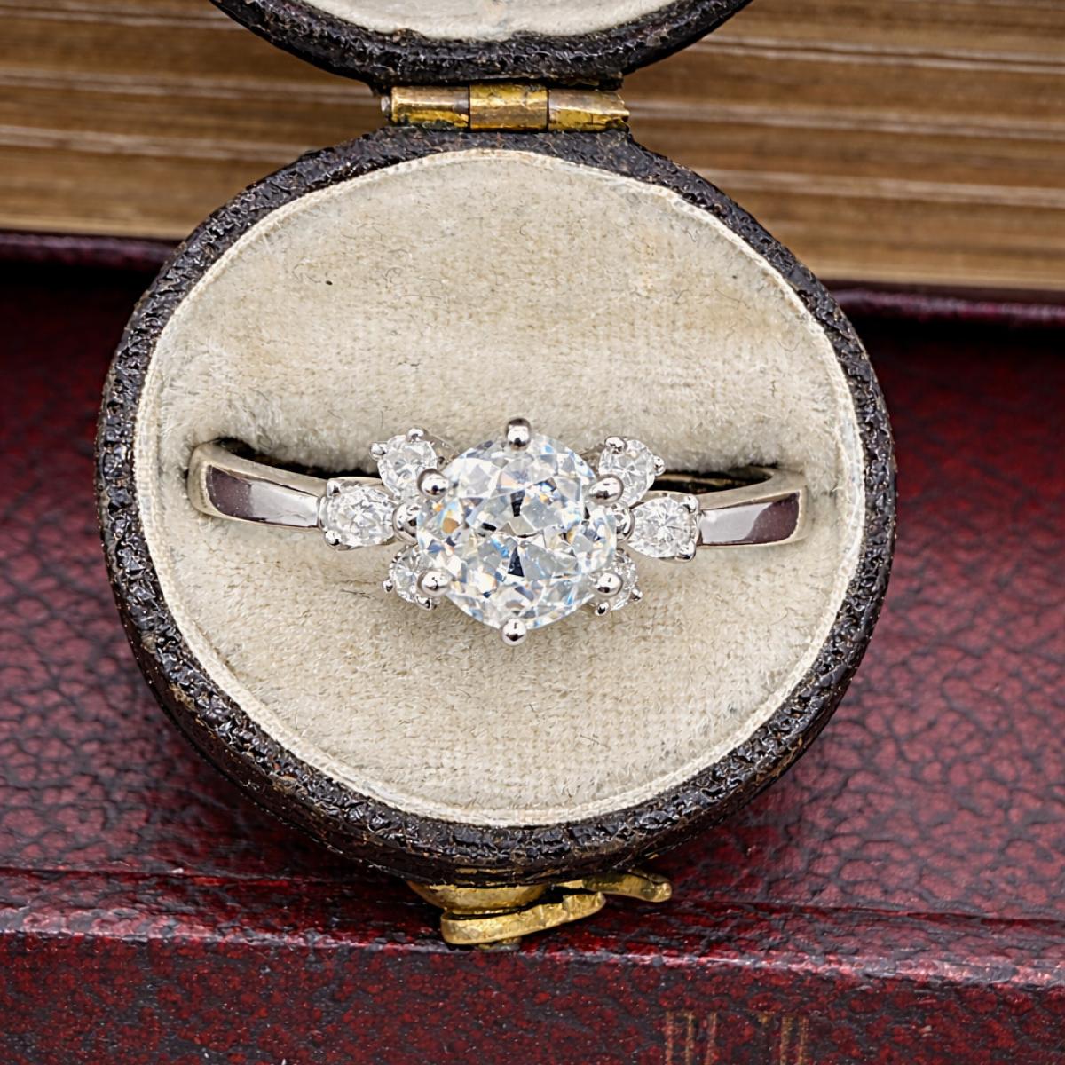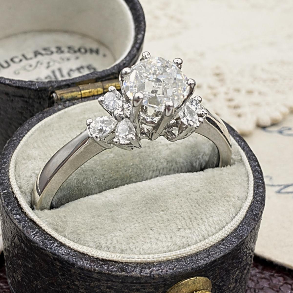 Old Cut Diamond Ring With Pear Cut Diamond Trefoil Shoulders