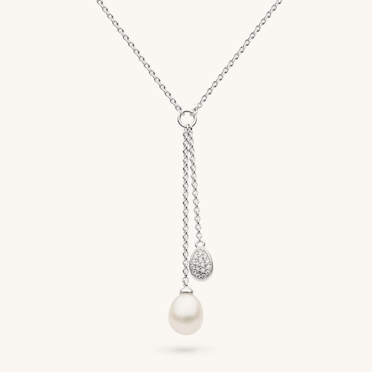 Coast Pebble Pavé & Pearl Lariat Style Necklace