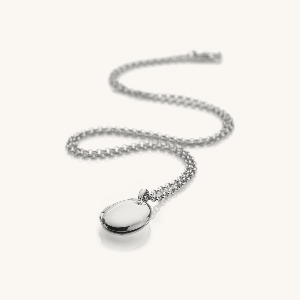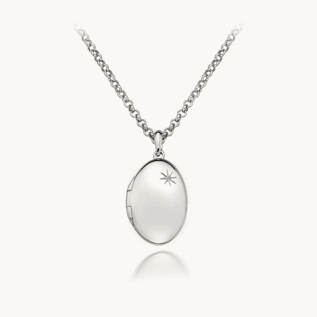 From our Memories Collection: A sophisticated locket with an on-trend twist! This precious locket measuring 17mm x 12mm crafted from 925 sterling silver features one real one point diamond. Included with our 45cm 925 sterling silver bead chain to complete the look.