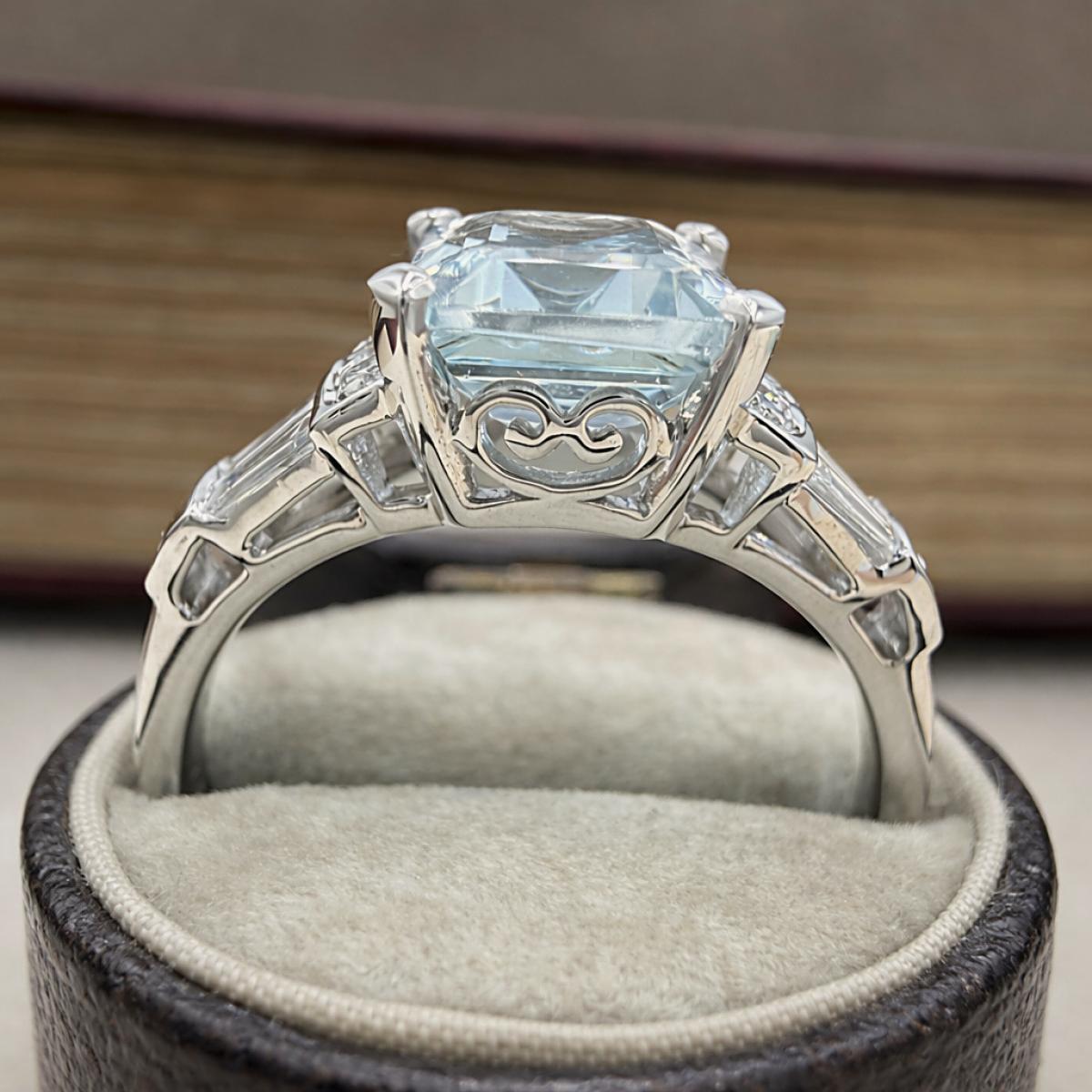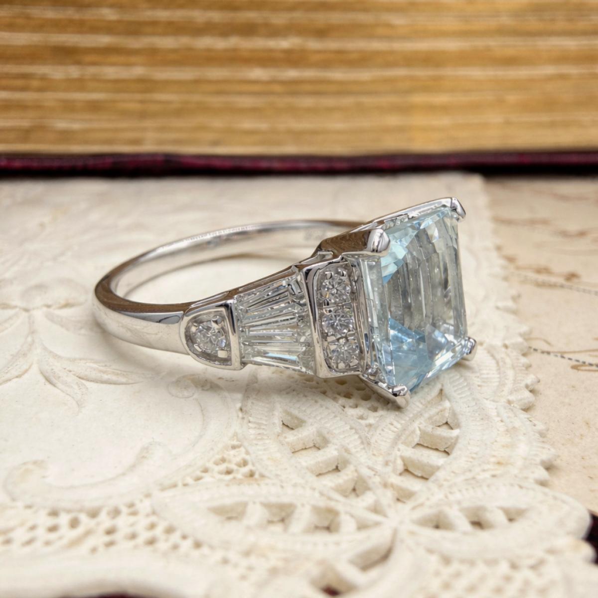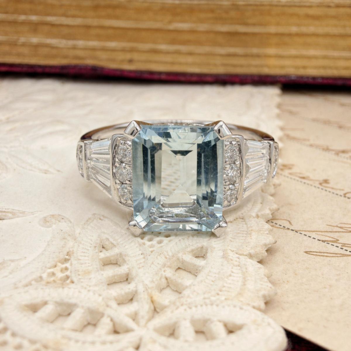 Deco Style Aquamarine and Diamond Ring
