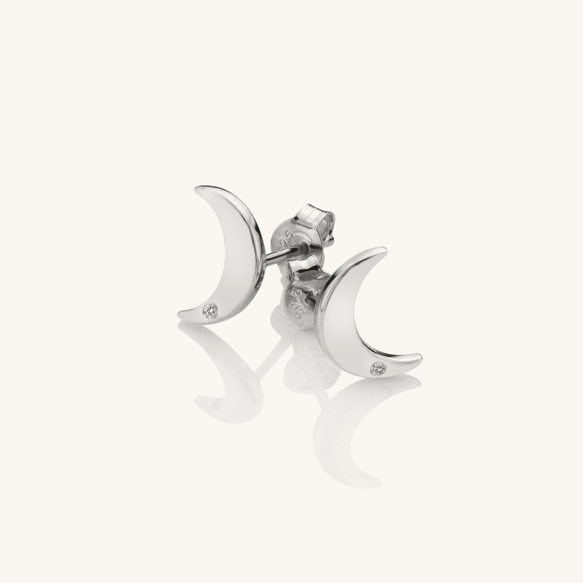 From our Diamond Amulets Collection: Simple and understated these 7mm x 11mm crescent earrings are beautifully crafted in sterling silver and adorned with two real diamonds.