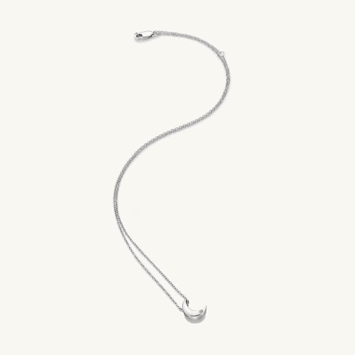 From our Diamond Amulets Collection: Simple and understated layer up our collection of diamond amulet pendants. Beautifully crafted in sterling silver adorned with a real diamond and set on a 16" to 18" extendable chain. The crescent measures 7mm x 10mm.