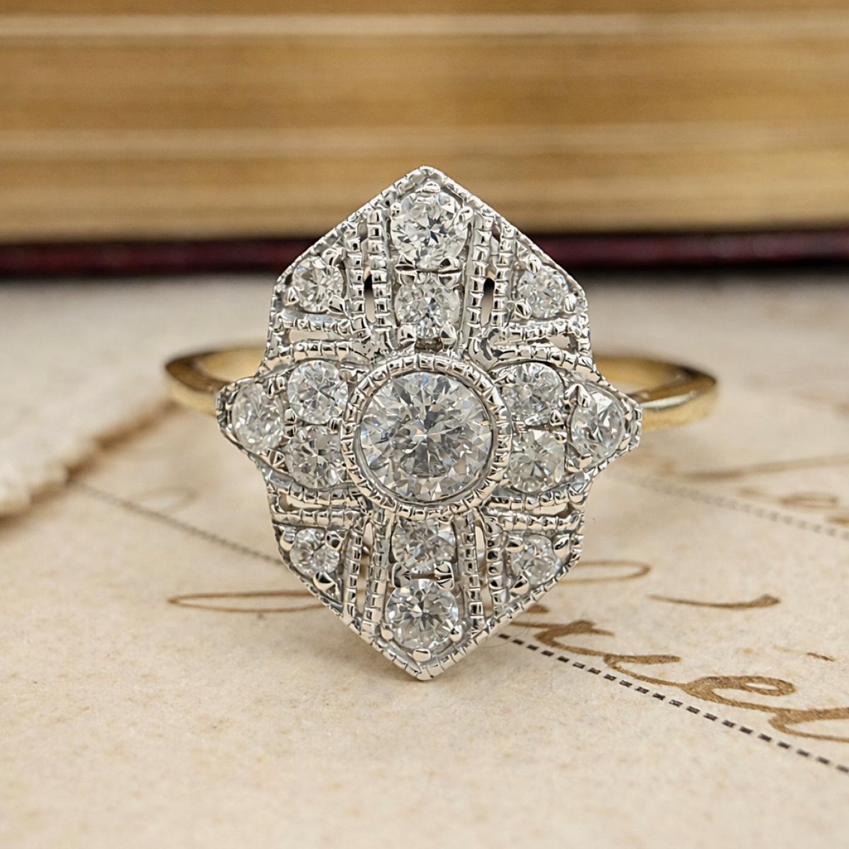Diamond Art Deco Style Plaque Ring