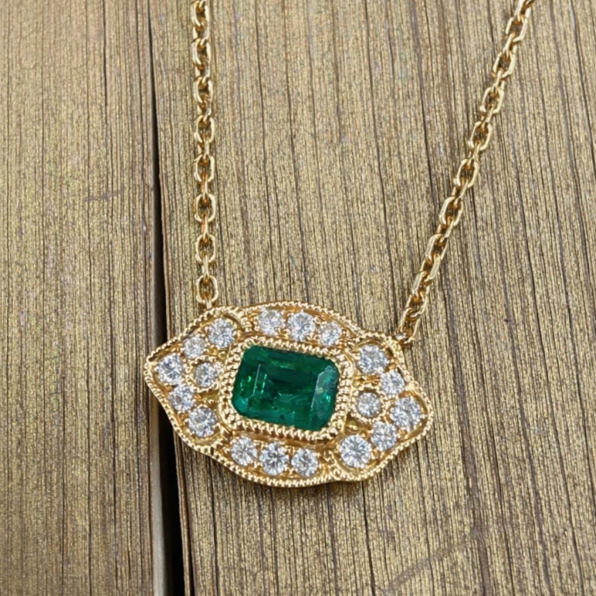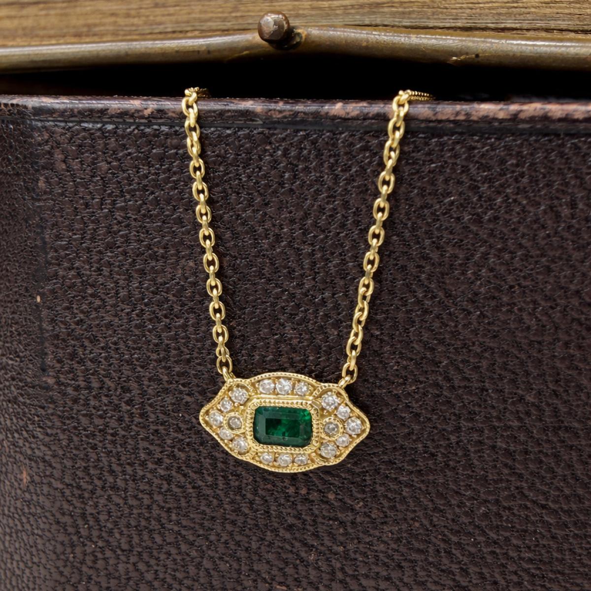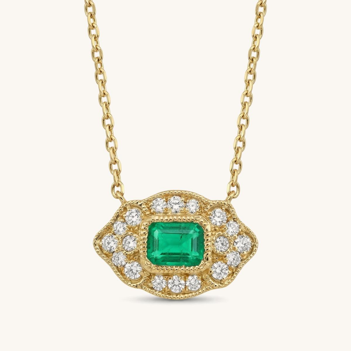 East to West Emerald Deco Style Necklace