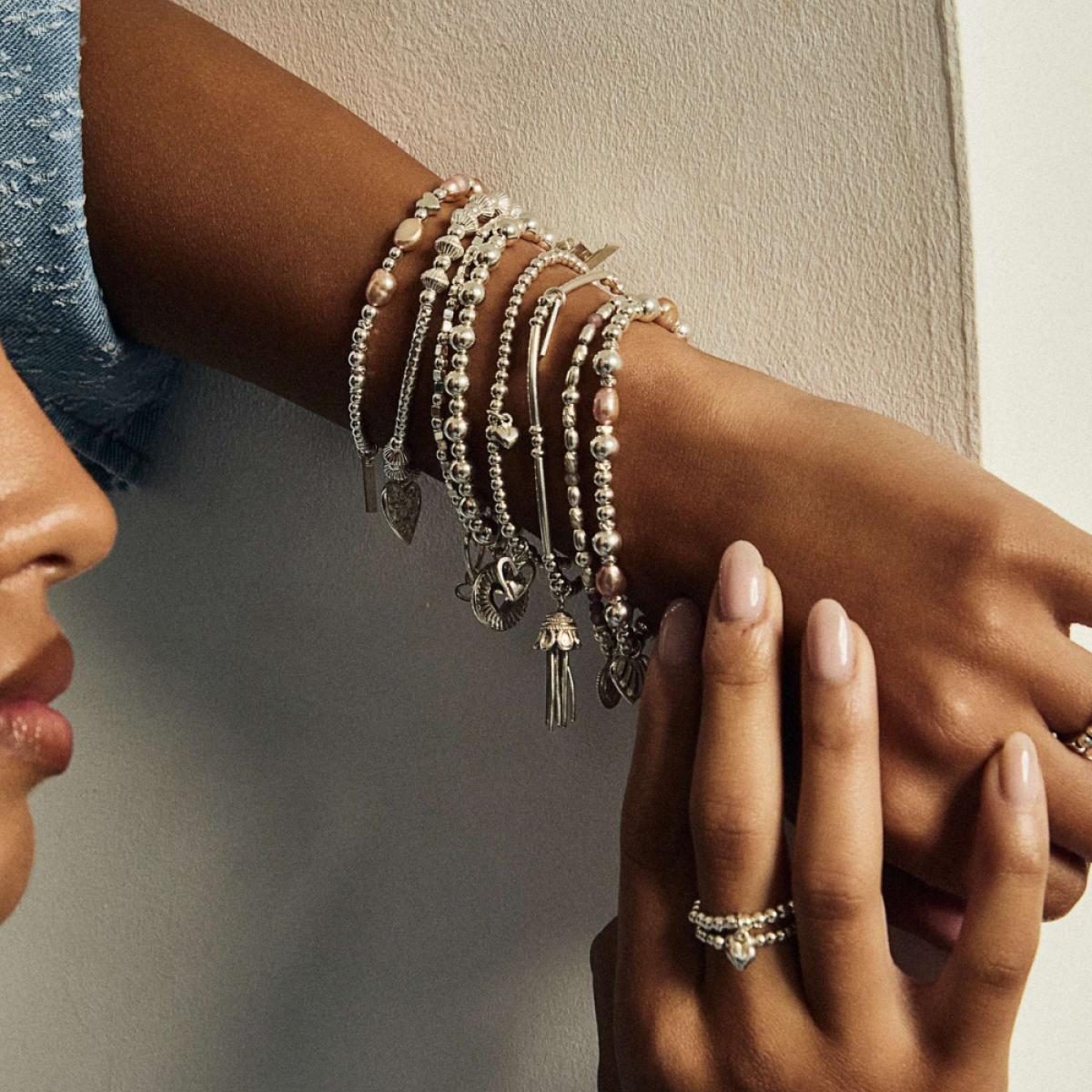 A singular baroque pearl sits at the centre of ChloBo’s iconic 6mm round beads, creating an elevated statement piece. Naturally unique in shape and texture, the feature pearl adds elegance and individuality, perfect worn alone or layered within your everyday stack.