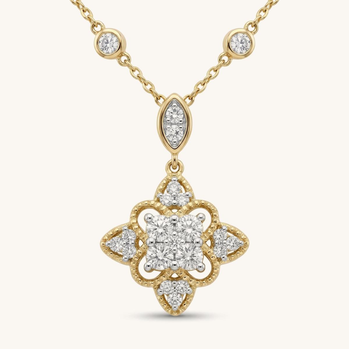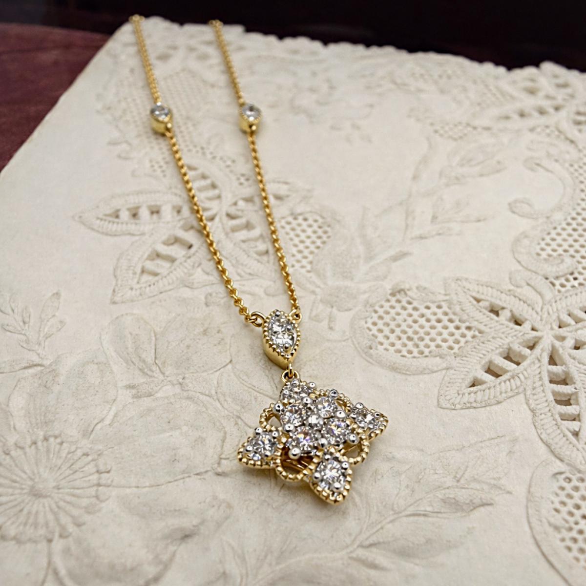 Floral Diamond Necklace With Diamond Stations