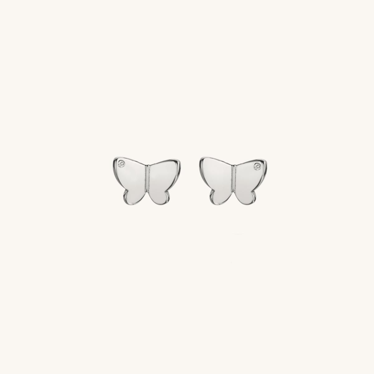 Her heart will be all a flutter with these cute butterfly studs! Crafted in 925 sterling silver, these earrings measuring 10mm x 8mm are rhodium plated for longevity, and of course there's a diamond! Perfect!