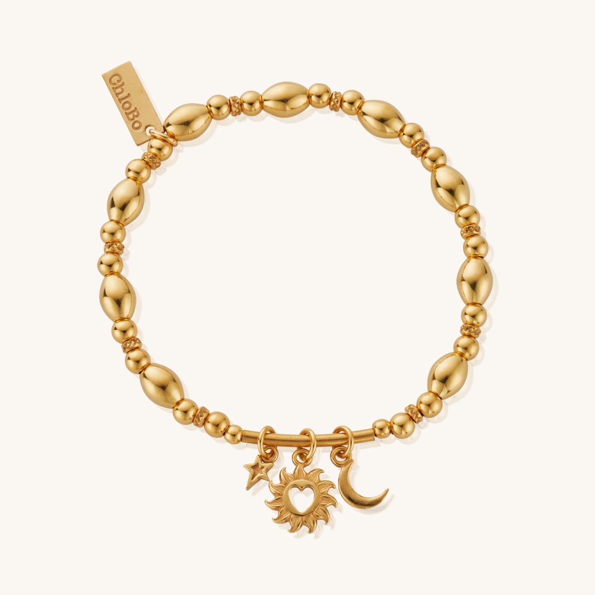 This three-charm bracelet features the sun, moon, and star - symbols of guidance, balance, and hope. Designed to brighten life’s darker moments, it serves as a gentle reminder that love and light will always guide you forward.