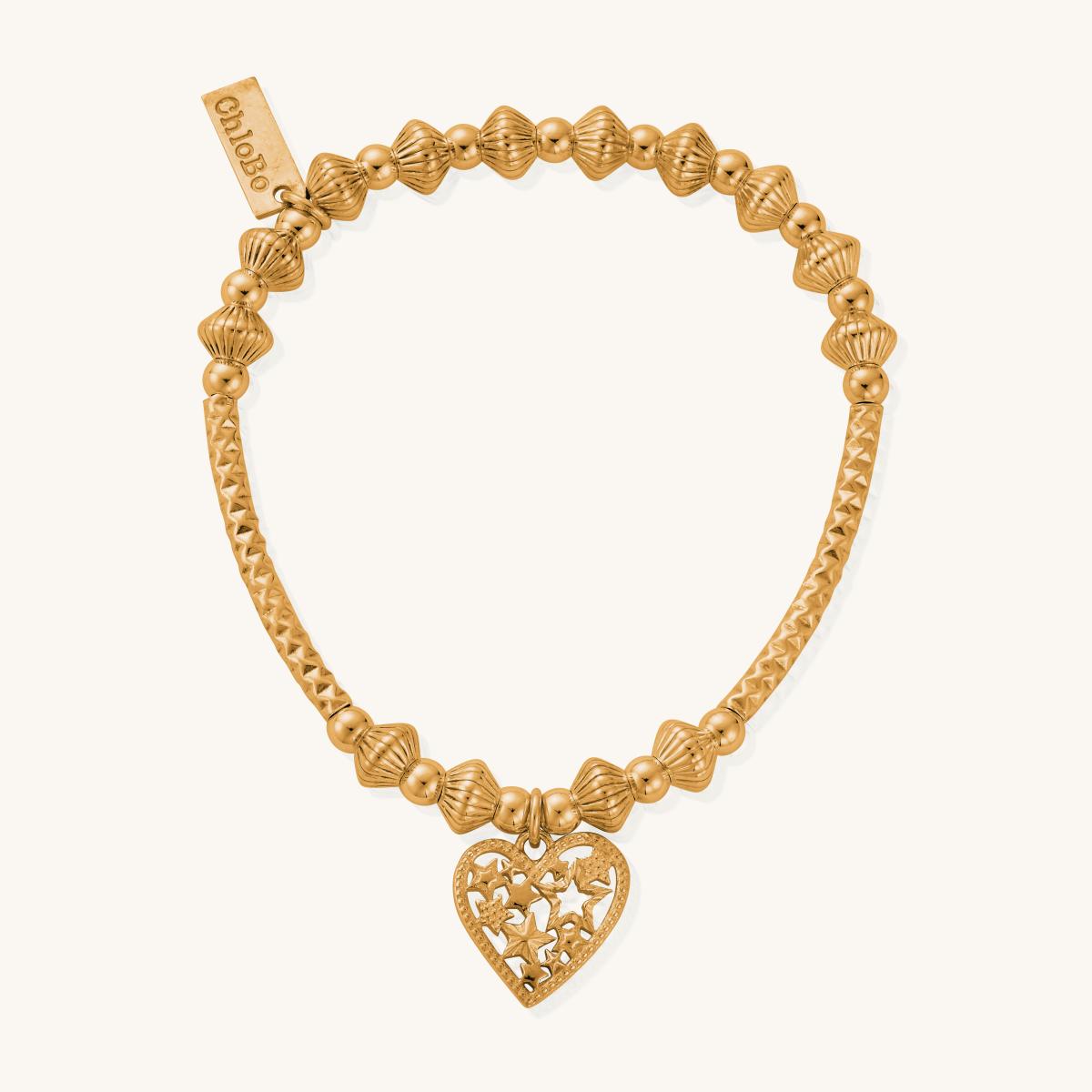 Gold Pattern Noodle Disc Starry Heart Bracelet