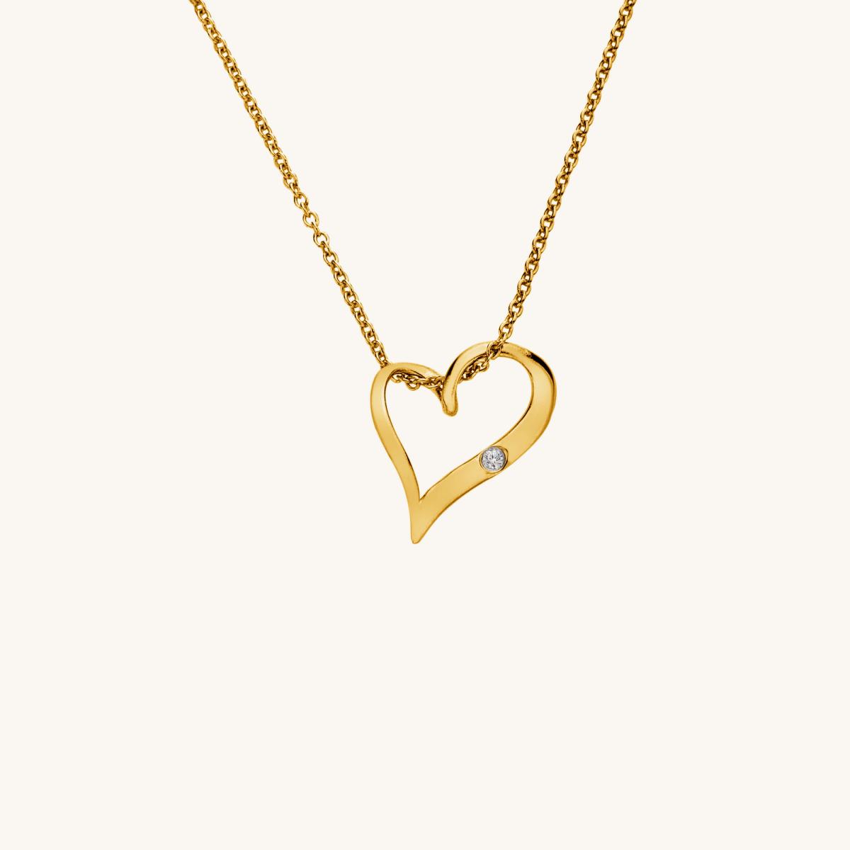 Bring a little love into your jewellery box with this elegant heart necklace featuring a tiny twist. Finished in 925 Sterling Silver and hand-set with a real diamond, this pendant measures 15mm x 11mm and is supplied on a 45cm that can be worn shorter at 40cm