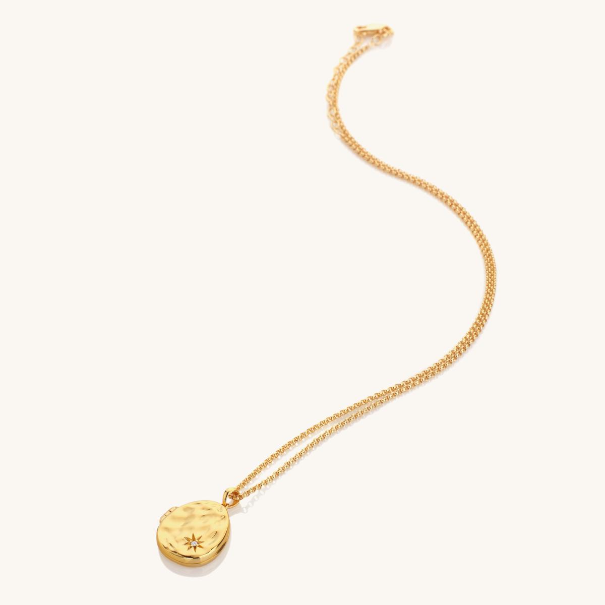 The subtly inconstant surfaces in my 'Lunar' suite of jewels just makes the jewellery so tactile, I think. This suite is really wearable - it looks amazing with almost any outfit. If your looking for dressed up or dressed down jewellery, this is the one for you! Crafted from sterling silver, plated with 18ct gold and hand-set with a real diamond, they're the perfect self-treat or gift. Jac x The locket measures 16mm x 13mm including the bail.