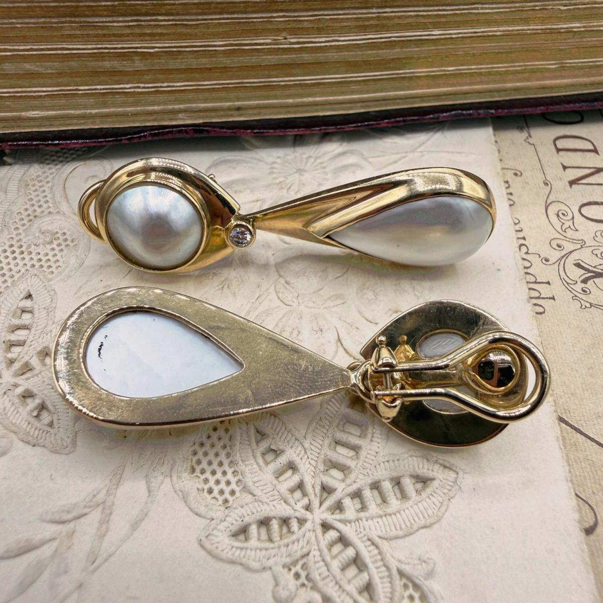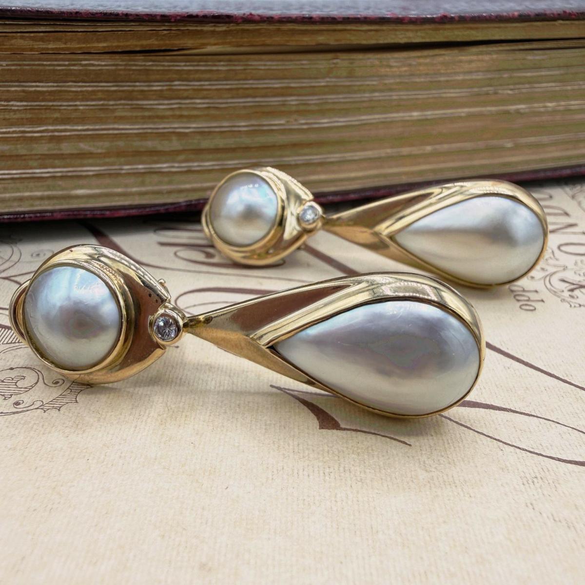 Mabe Pearl and Diamond Drop Clip On Earrings