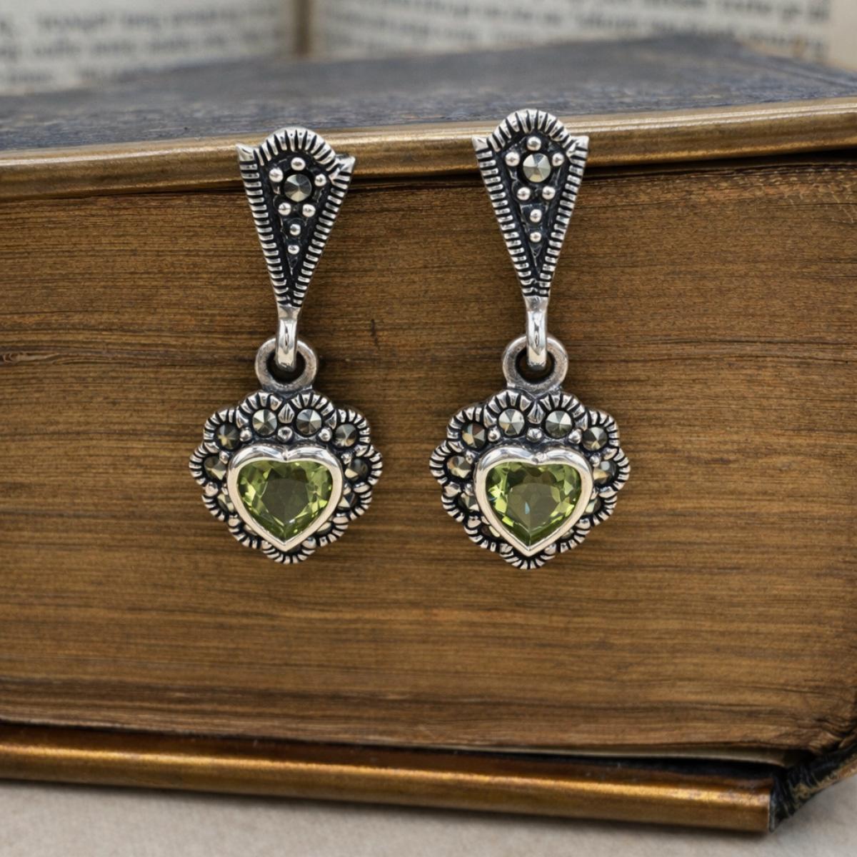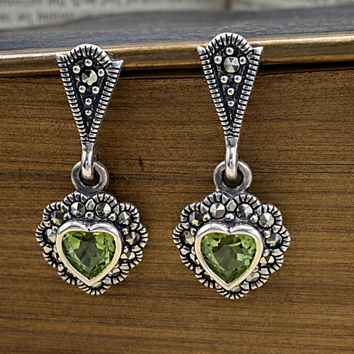 Marcasite & Peridot Drop Earrings