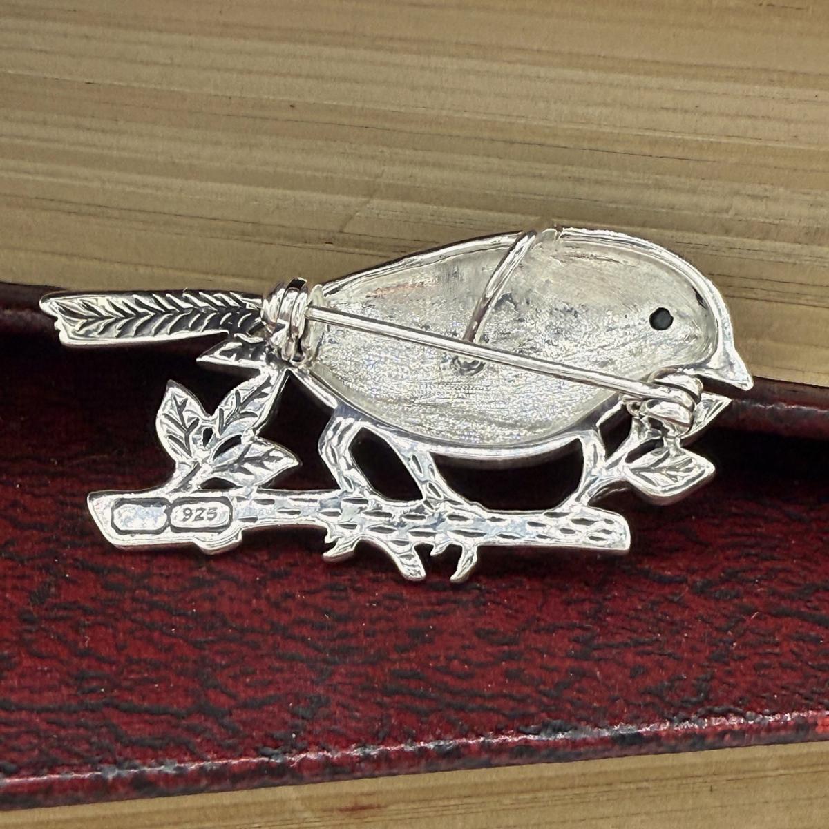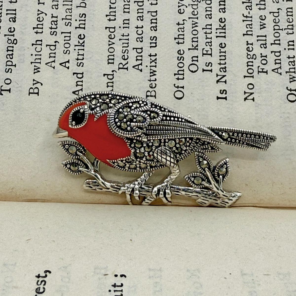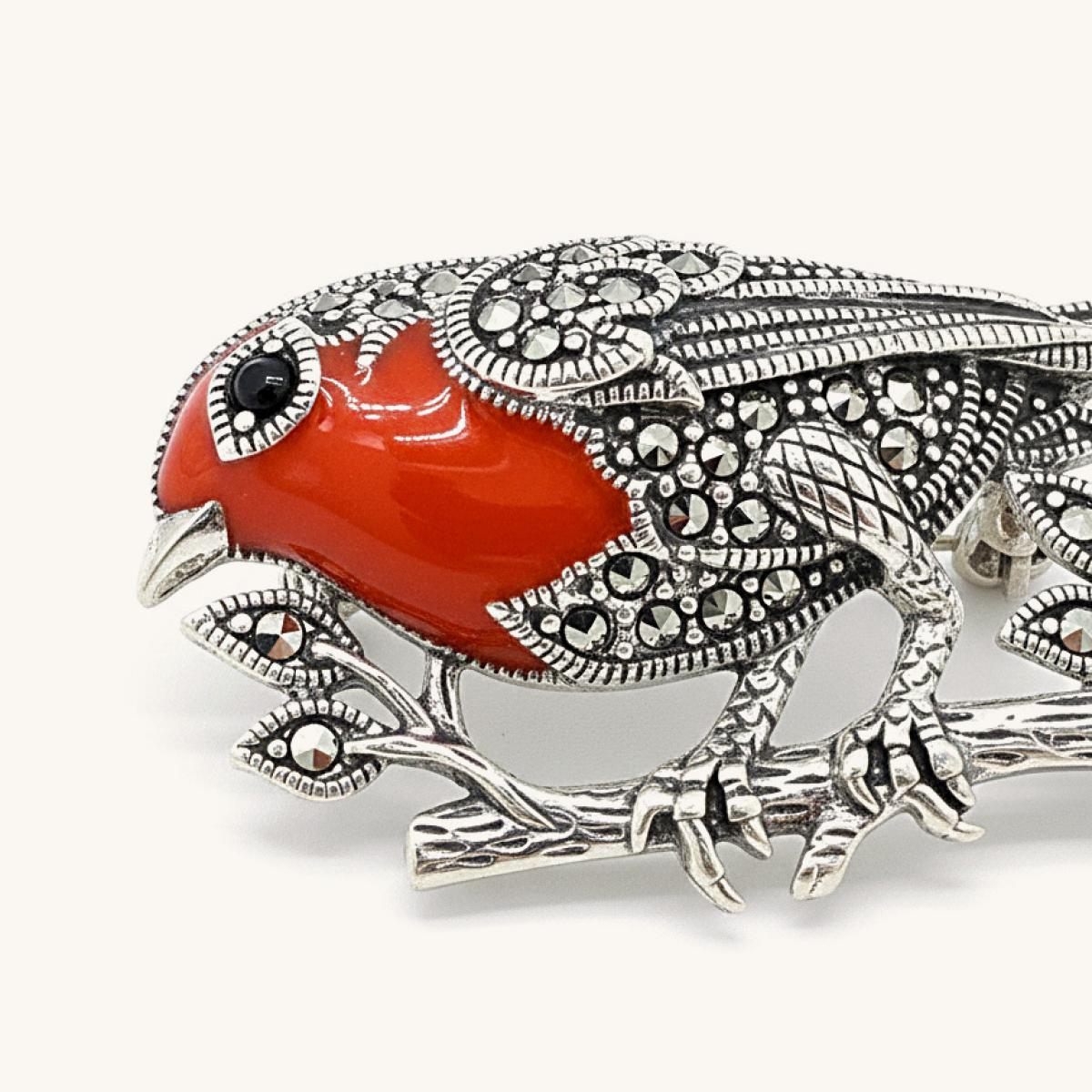 Marcasite & Enamel Robin Brooch