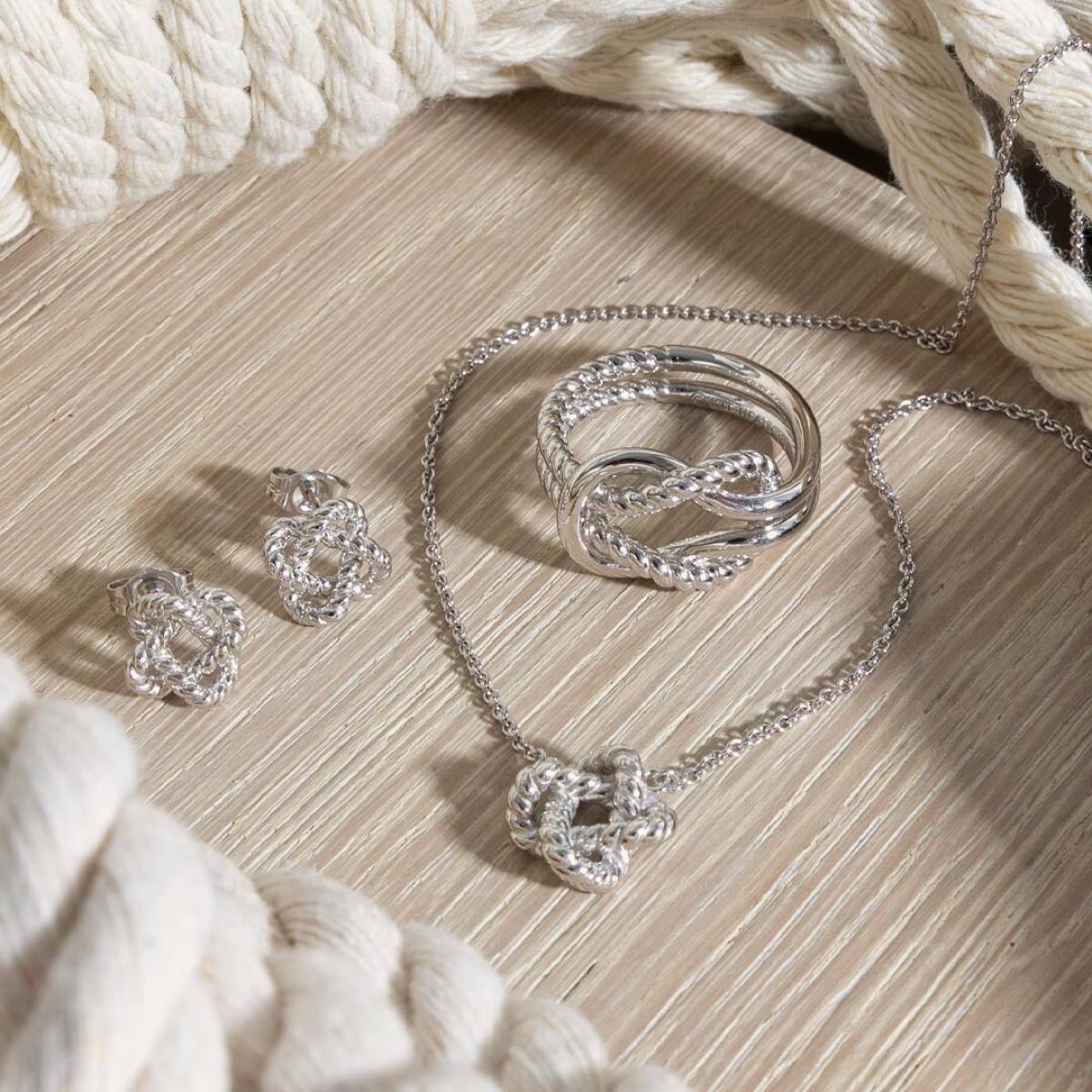 The Sterling Silver Rope Knot Ring is inspired by Devon’s maritime heritage. Featuring an intricate reef knot in rope-like detail, it symbolises strength, connection, and tradition. Made in sterling silver with a premium rhodium-plated finish, this timeless design reflects Kit Heath’s coastal roots and enduring craftsmanship.