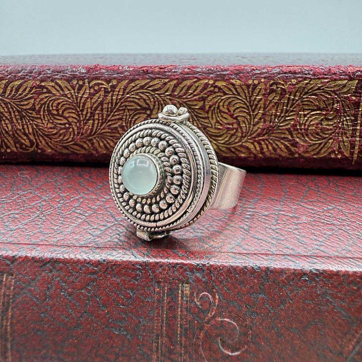 Moonstone Locket Ring With Beaded Detail