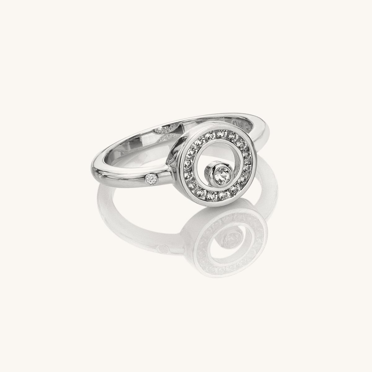 Sparkly details are our thing, featuring a diamond set in the centre surrounded by bright white topaz stones, this ring will catch your eye from across the room. This ring measure 10mm at its widest point.