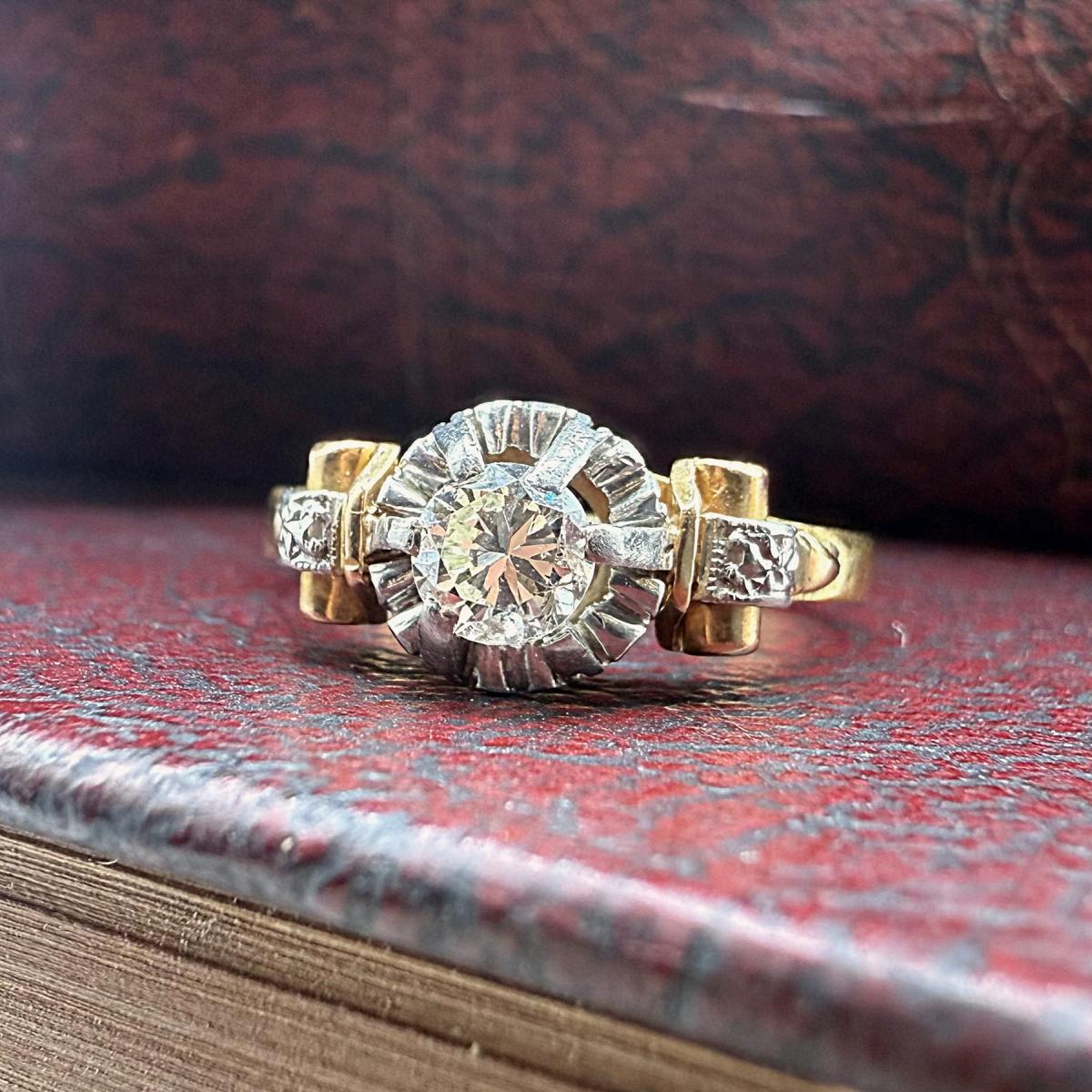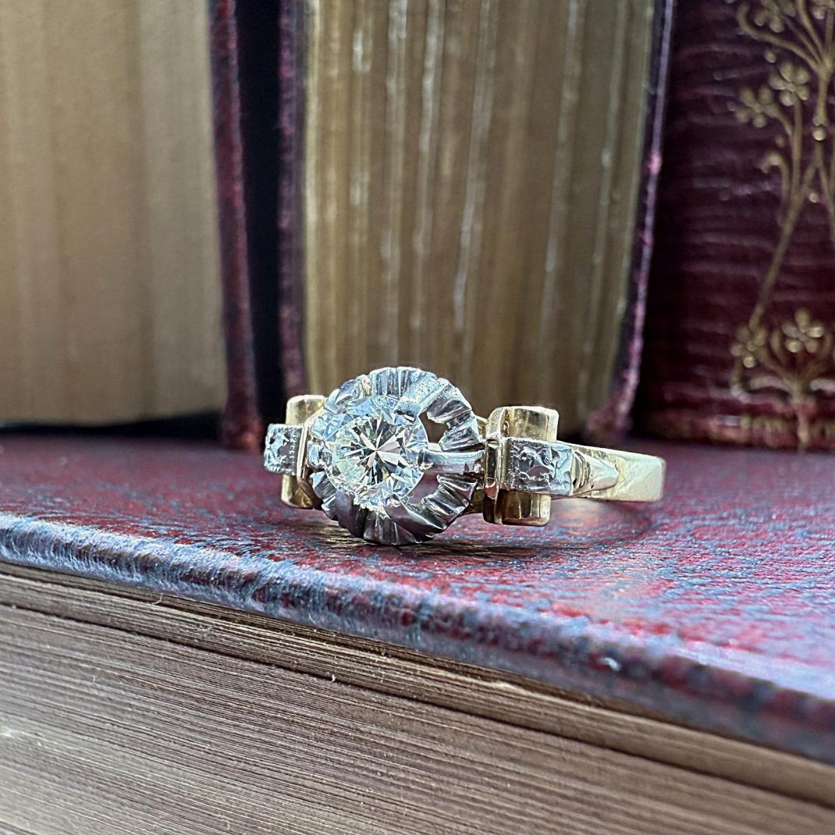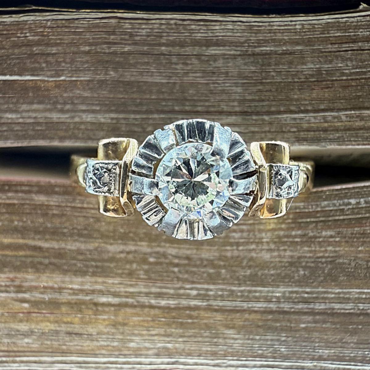 Ornate Diamond Ring With Scroll Shoulders Circa 1930s