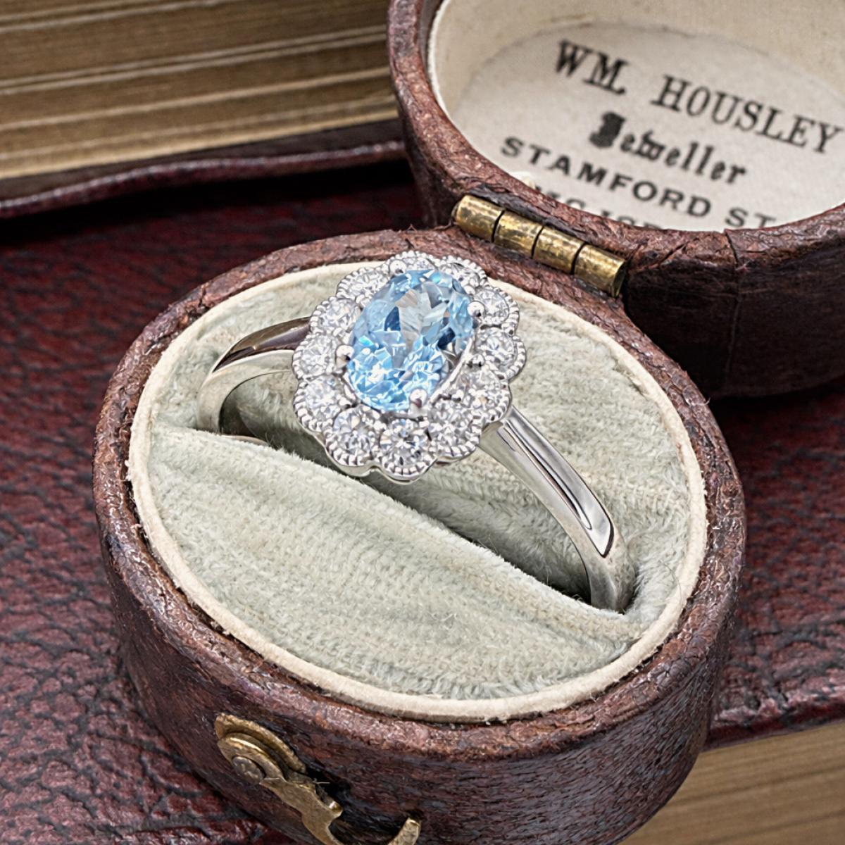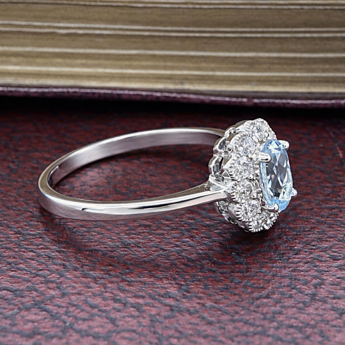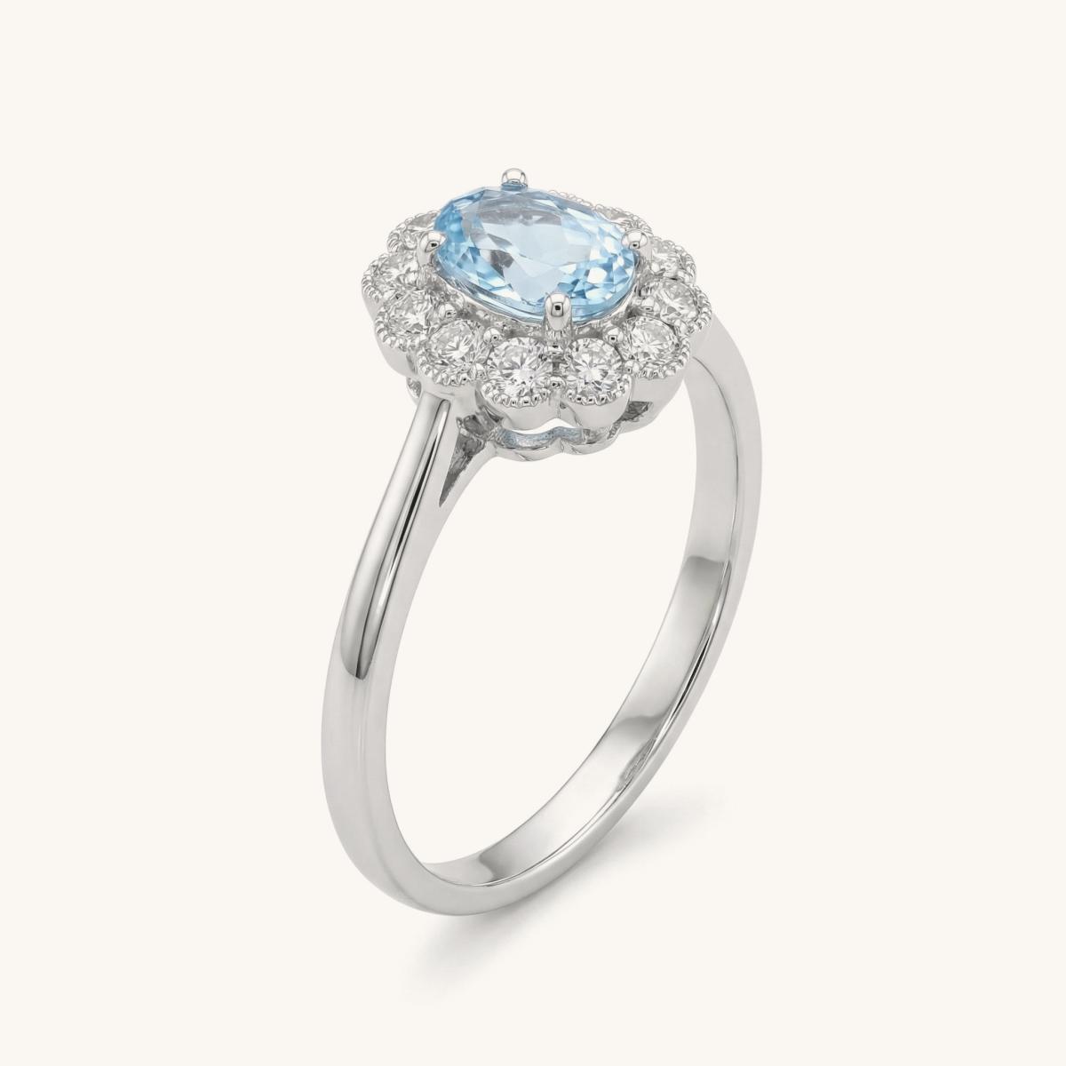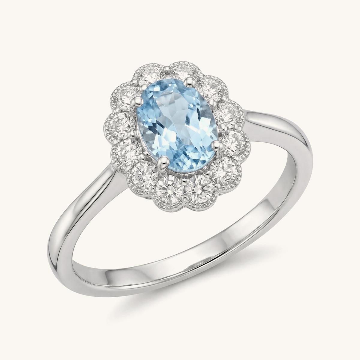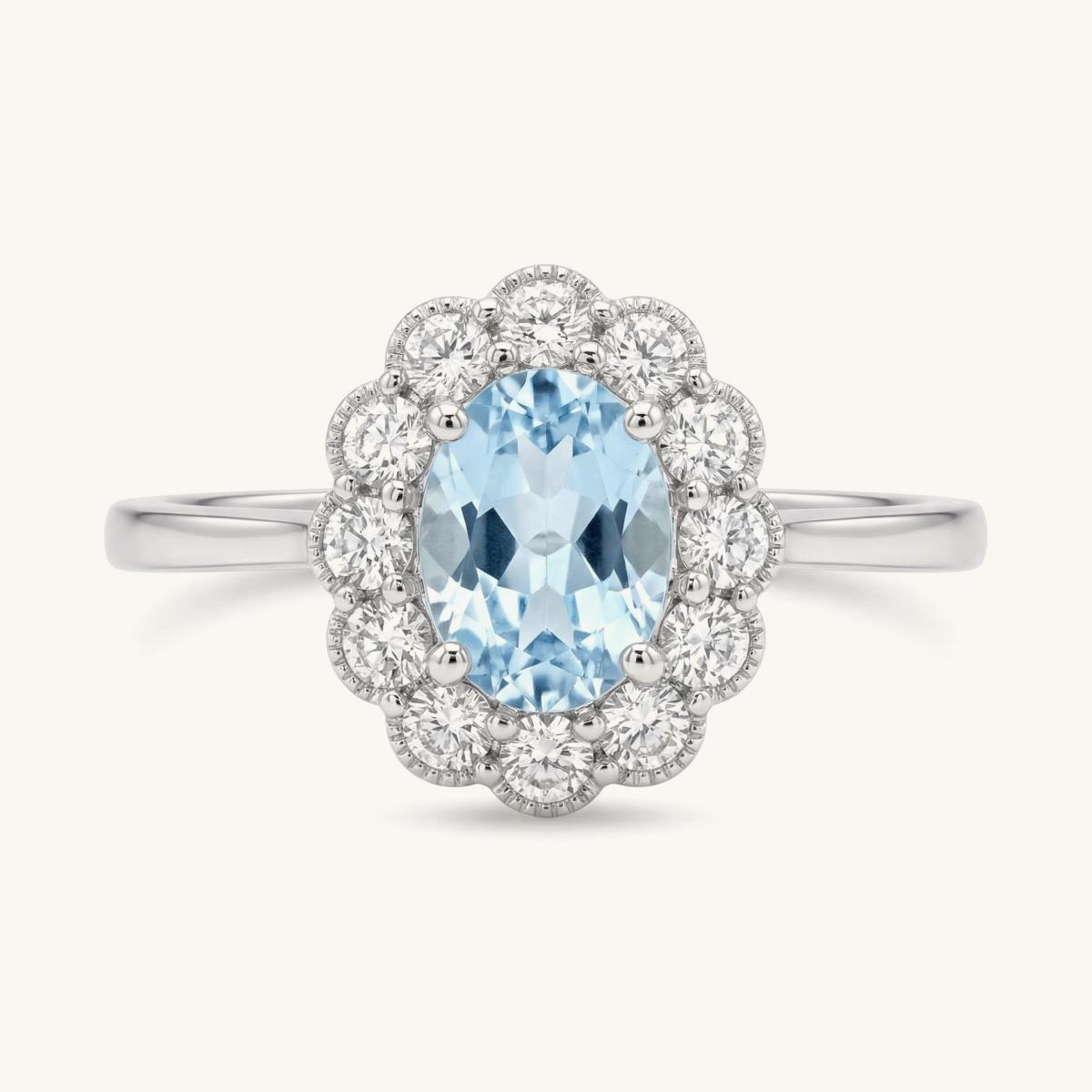 Oval Aquamarine & Diamond Halo Ring