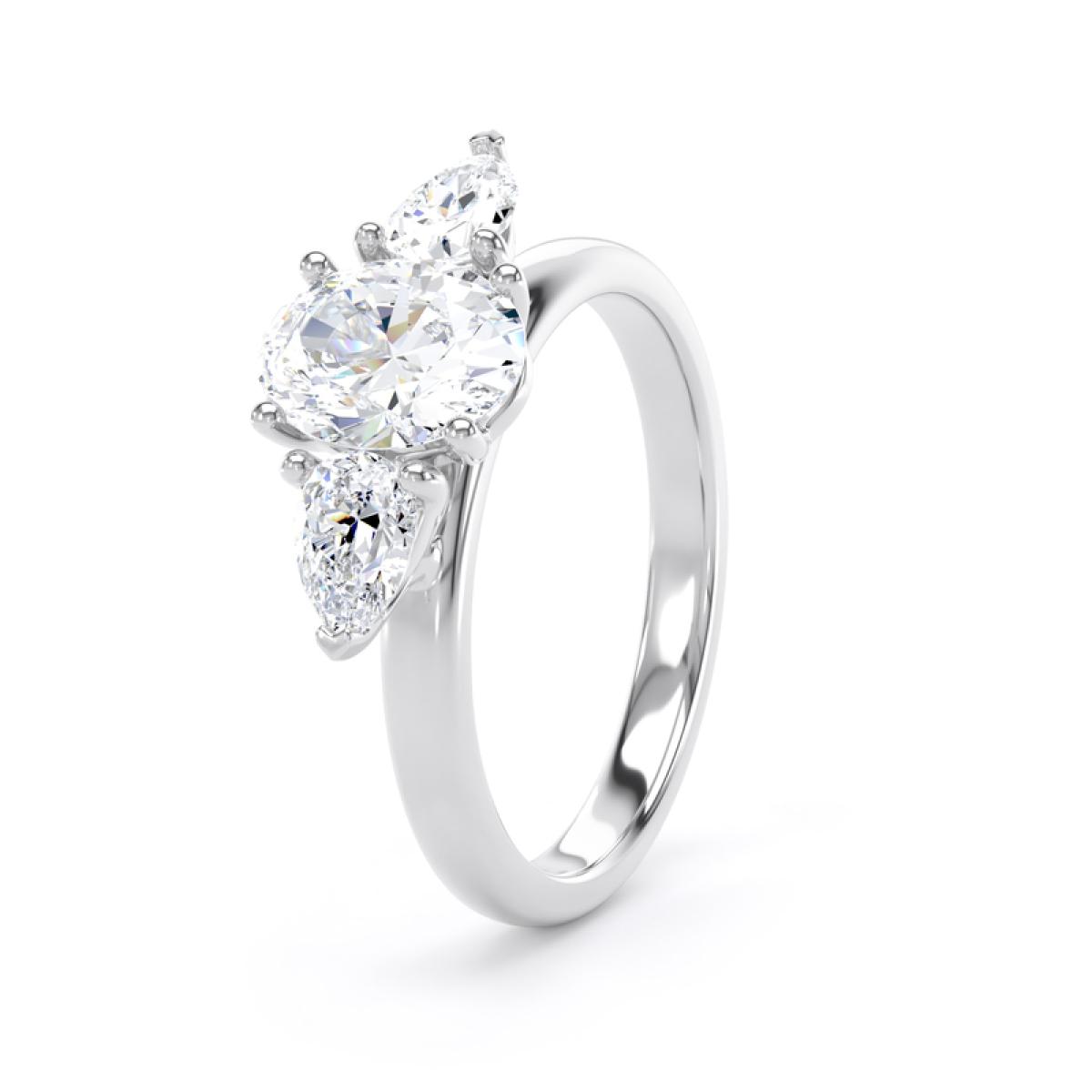 This platinum 950 engagement ring features a 0.60ct oval cut diamond at its centre, complemented by a trilogy setting that frames the stone with refined proportion. The platinum mount offers lasting durability and a neutral lustre that allows the diamond to command attention. A considered design defined by balance and clarity.