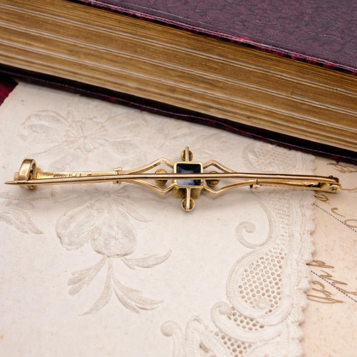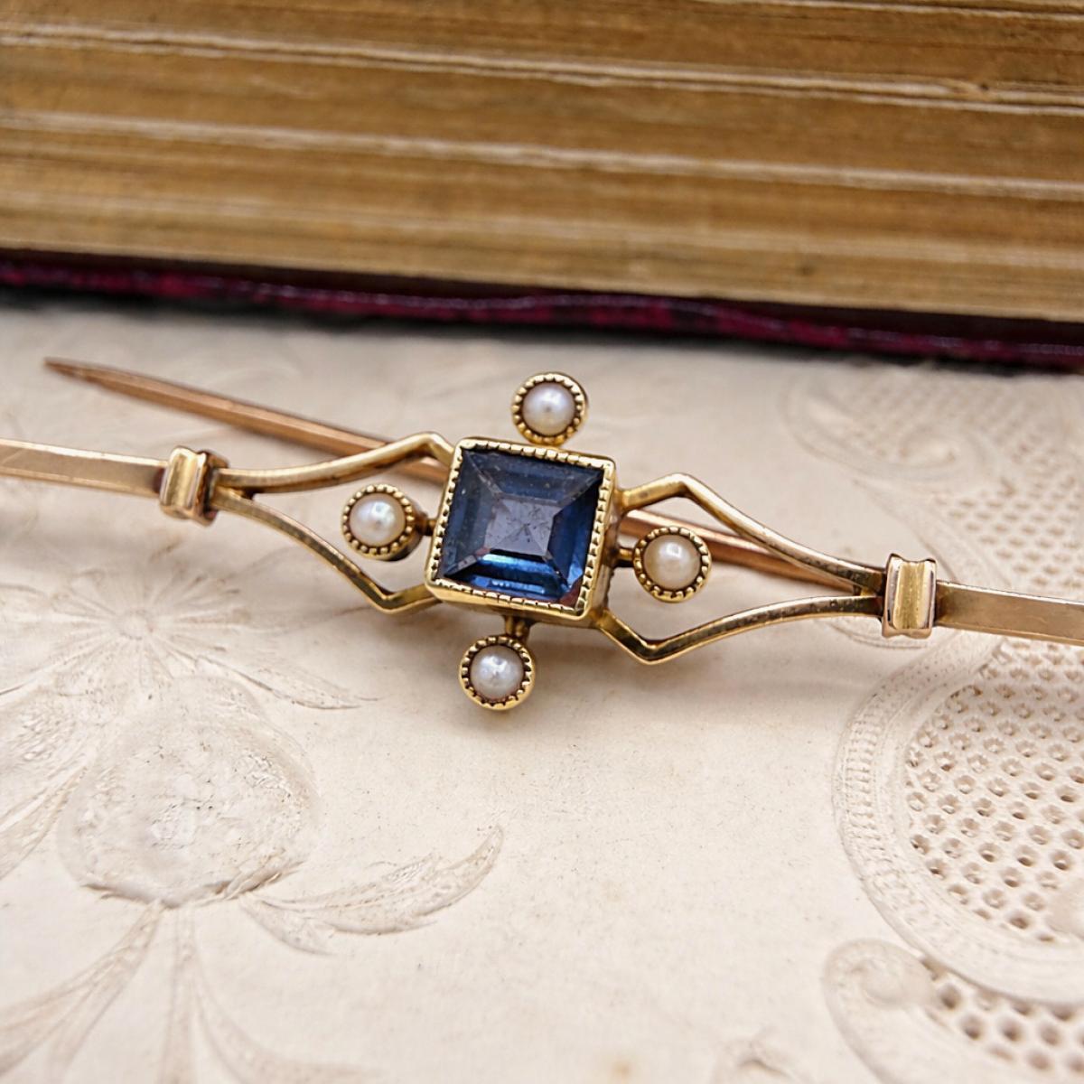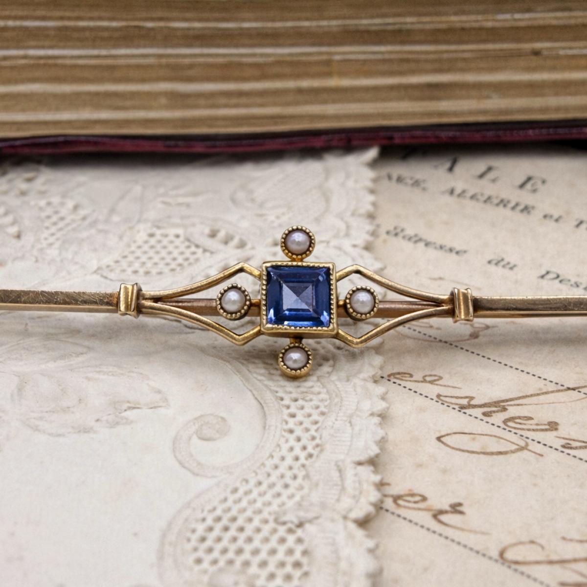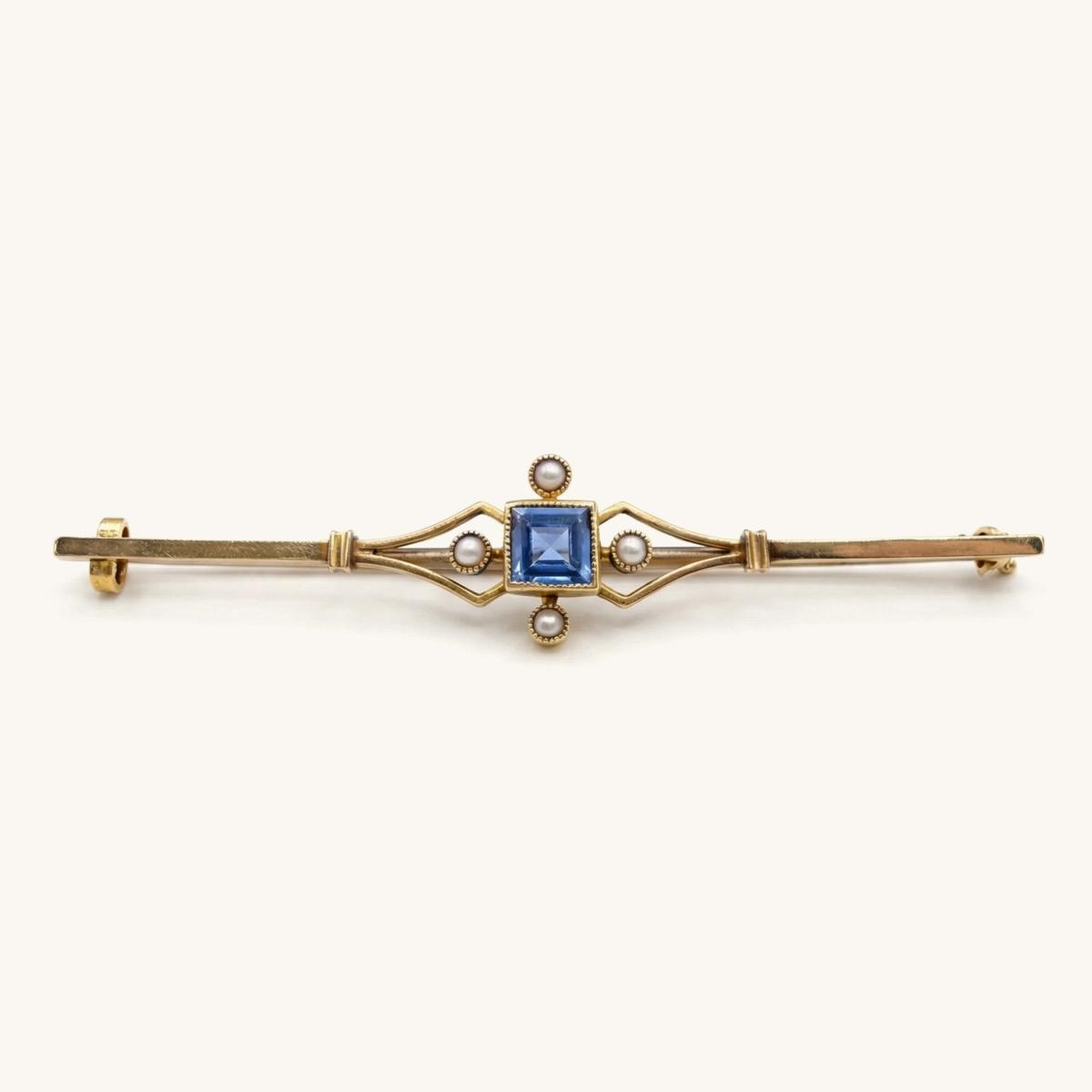 Sapphire and Seed Pearl Brooch