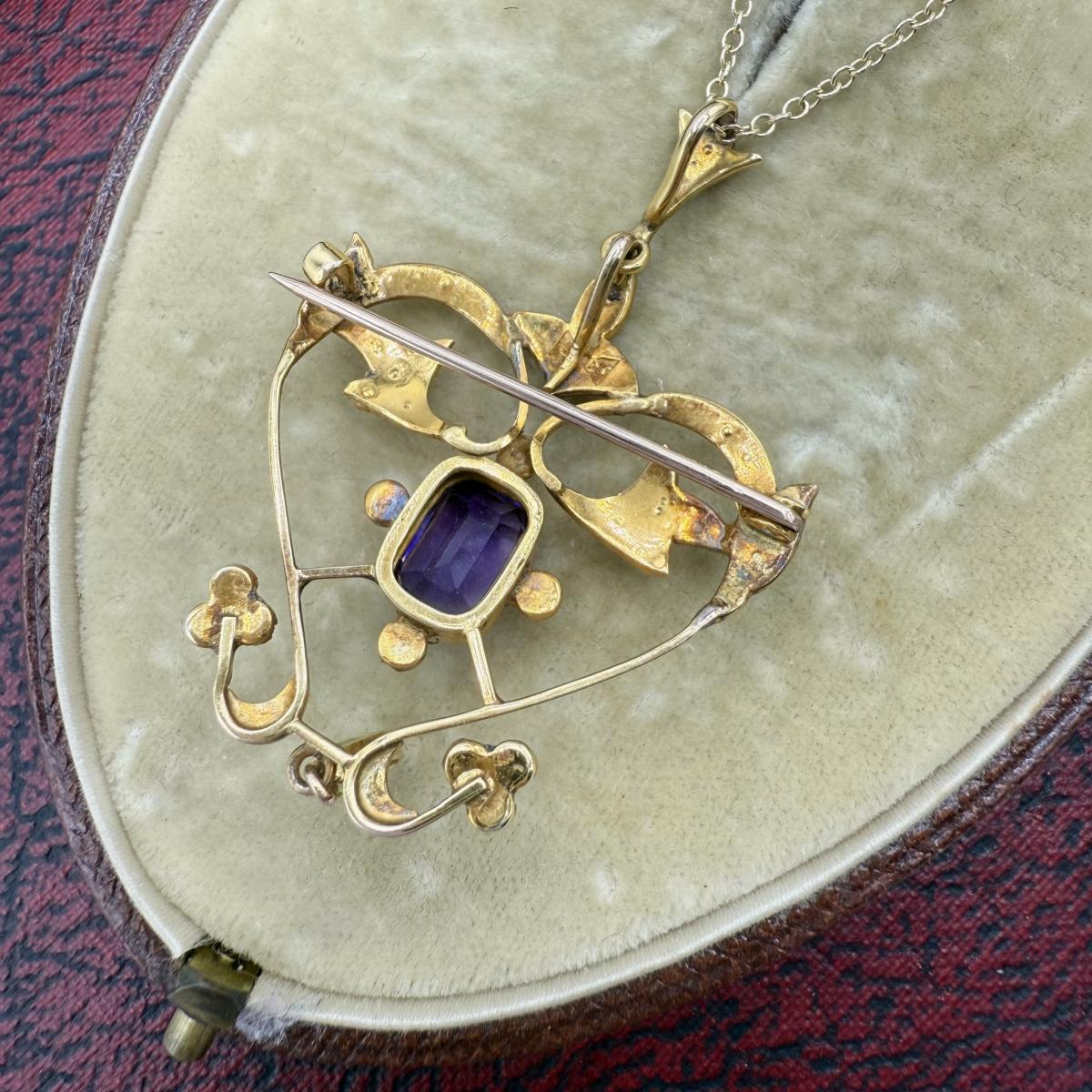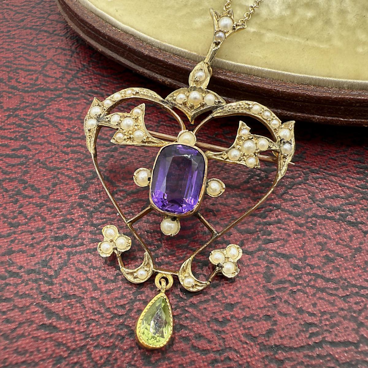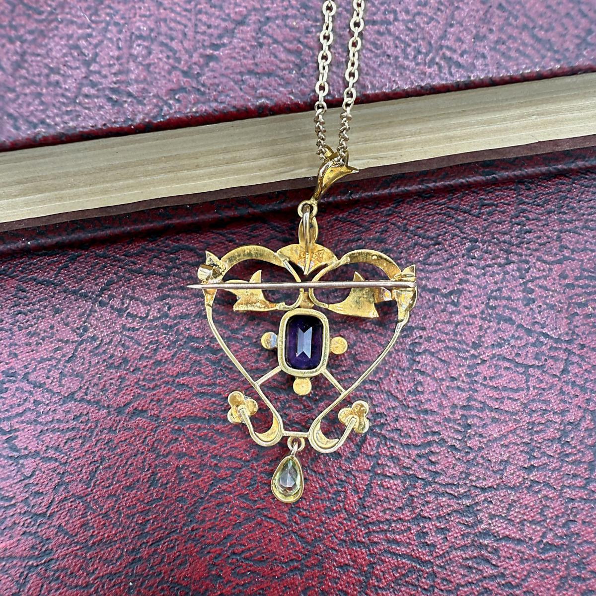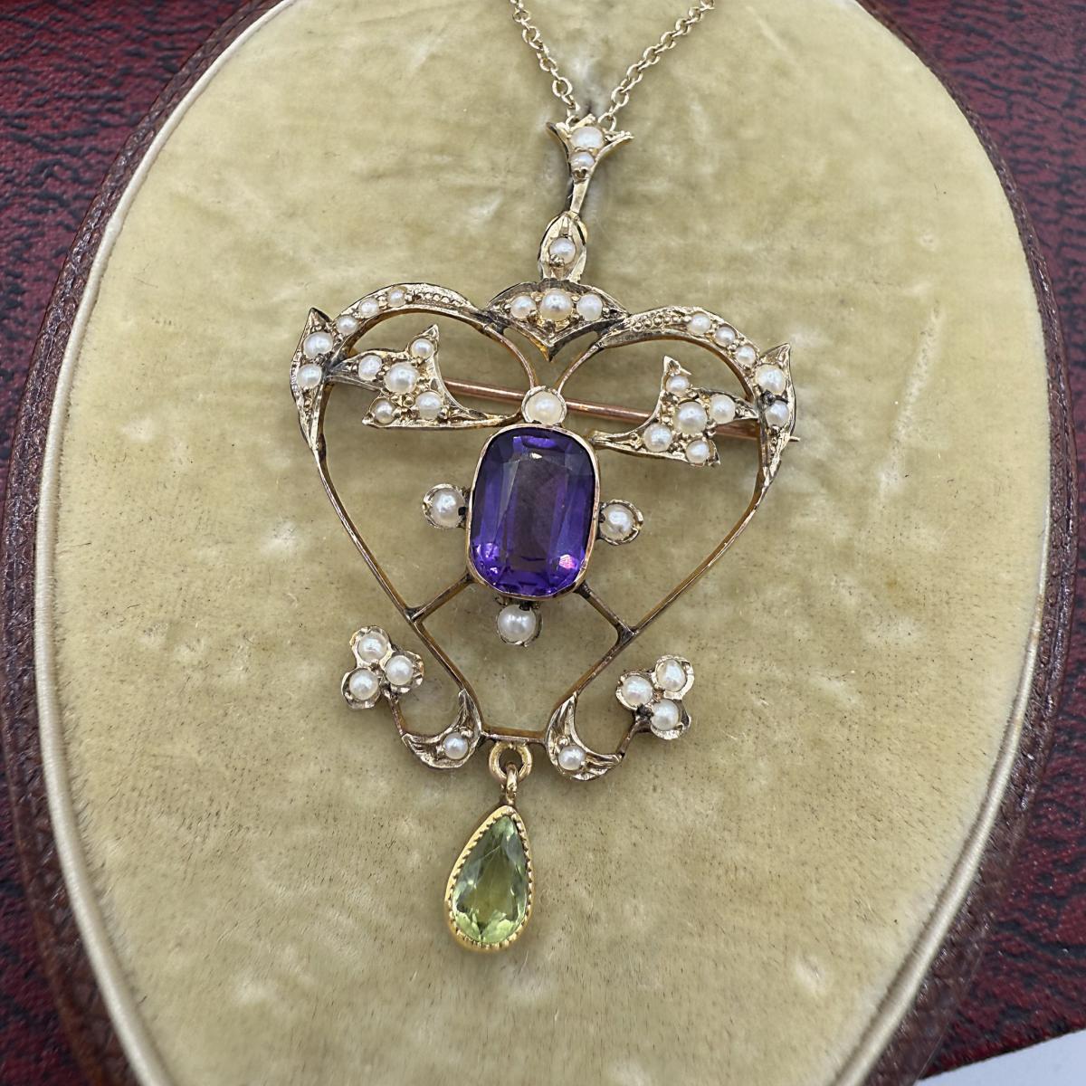 Suffragette Amethyst, Pearl & Peridot Brooch Necklace