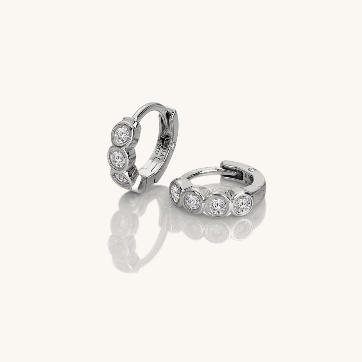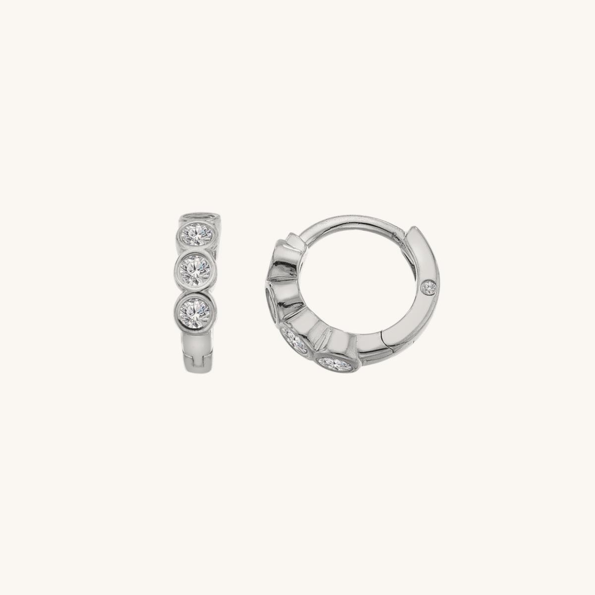 Mini huggies are a favourite for everyone! Wear them from day to night effortlessly. Crafted in sterling silver and hand-set with a real diamond and White Topaz, these huggies measure 8mm wide.