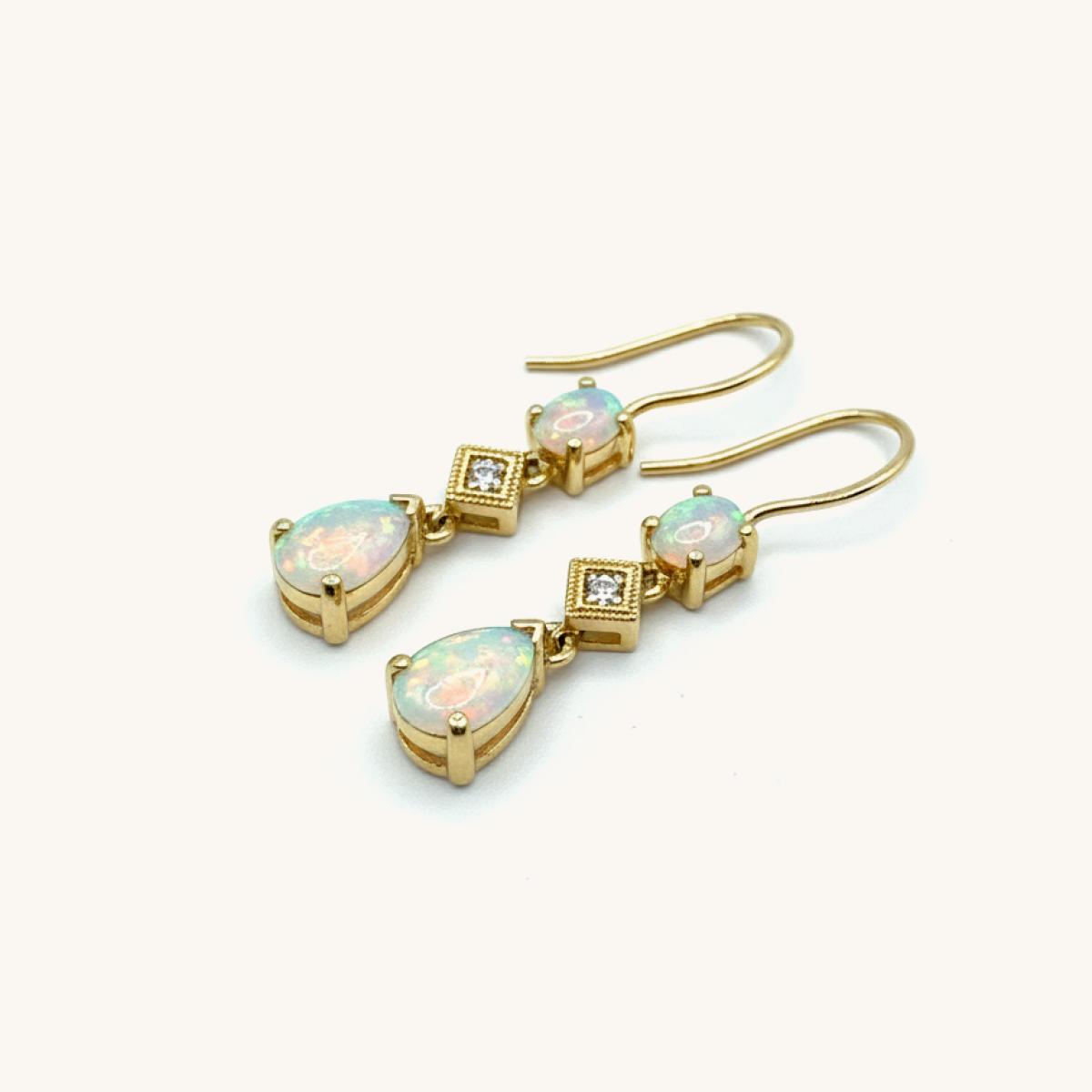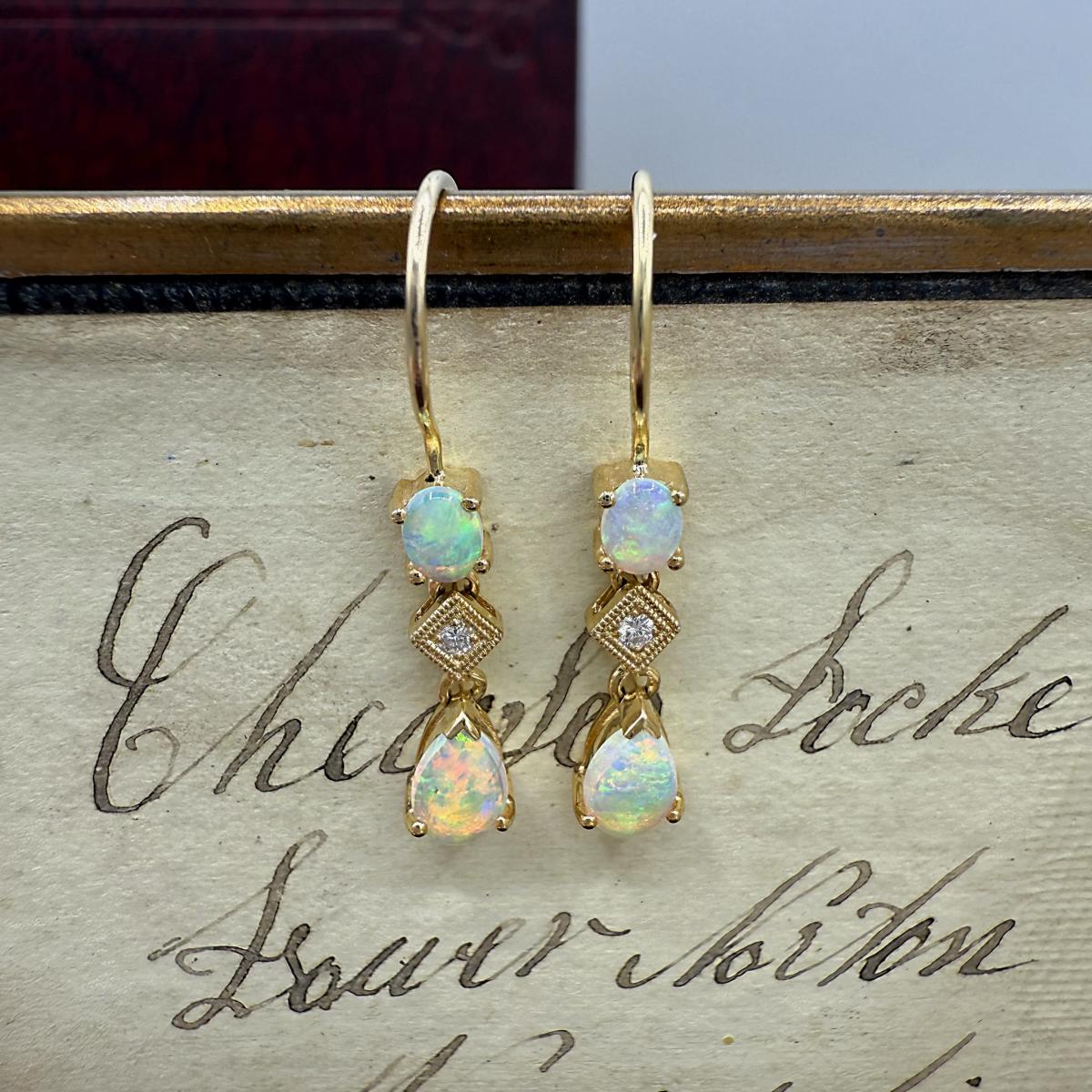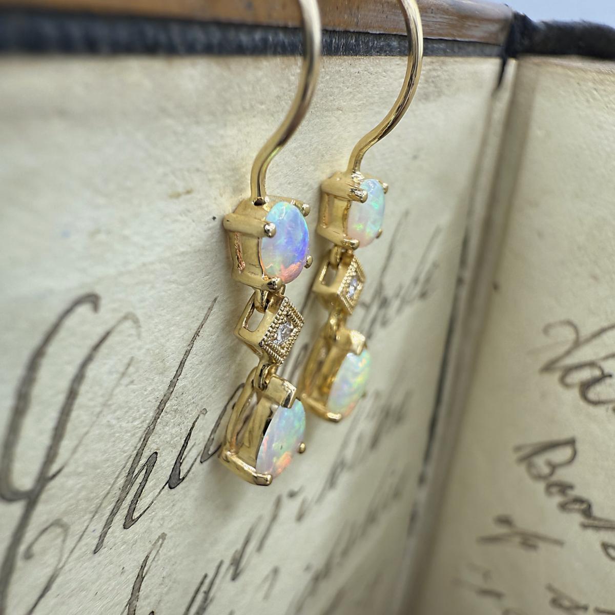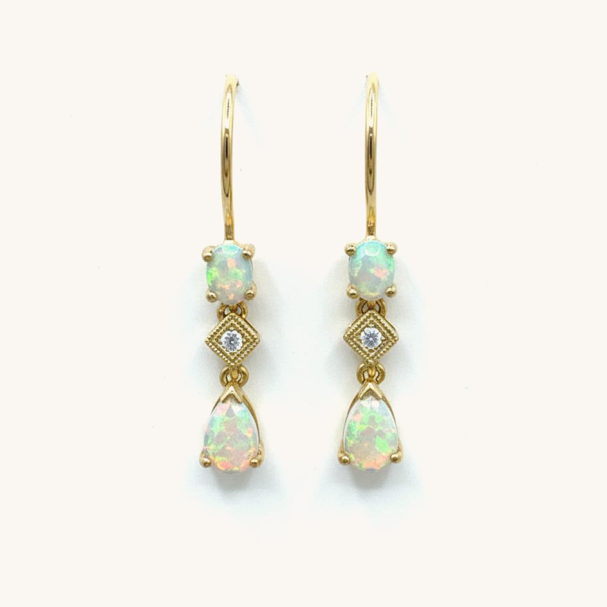 Triple Drop Opal & Diamond Earrings