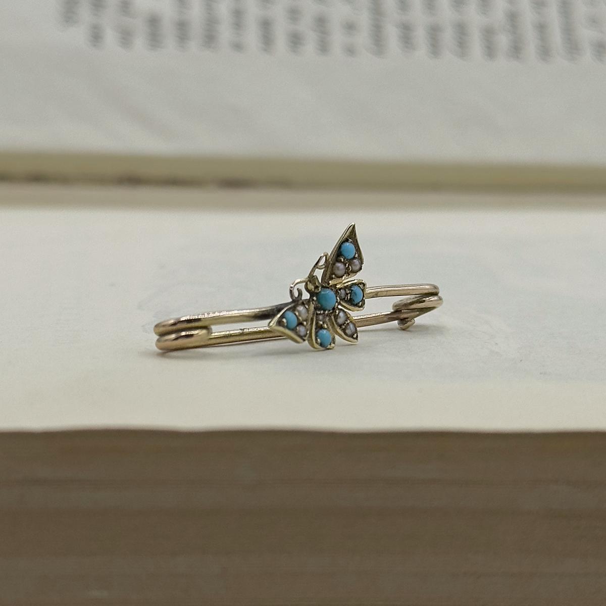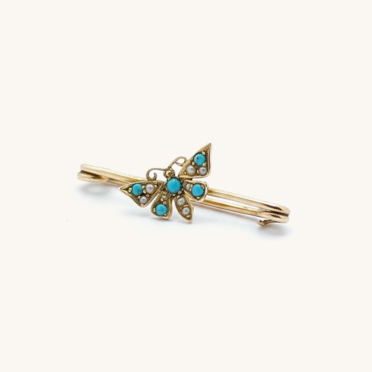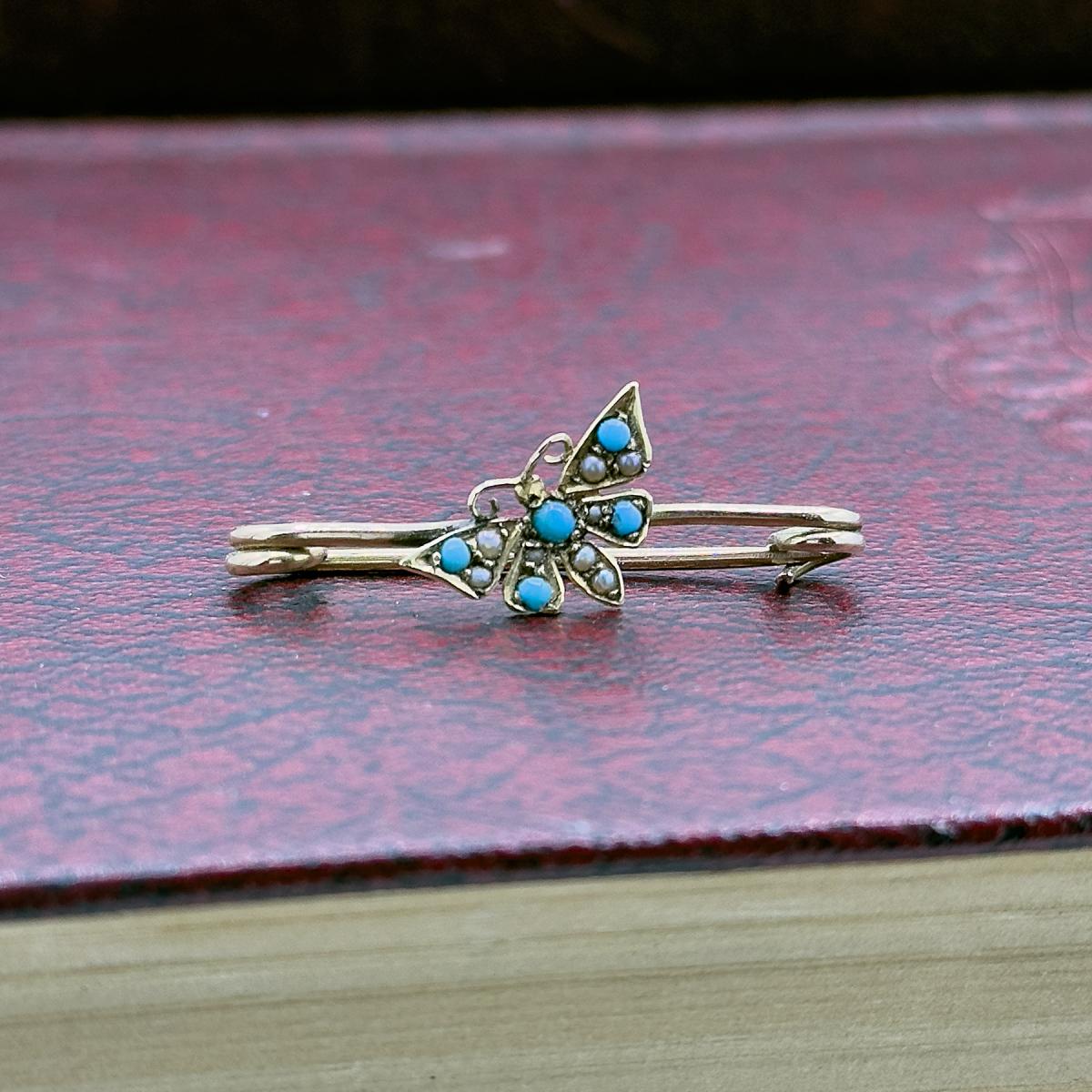 Turquoise & Seed Pearl Art Nouveau Butterfly Brooch