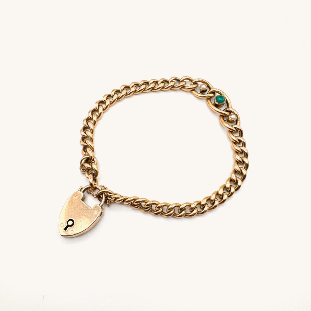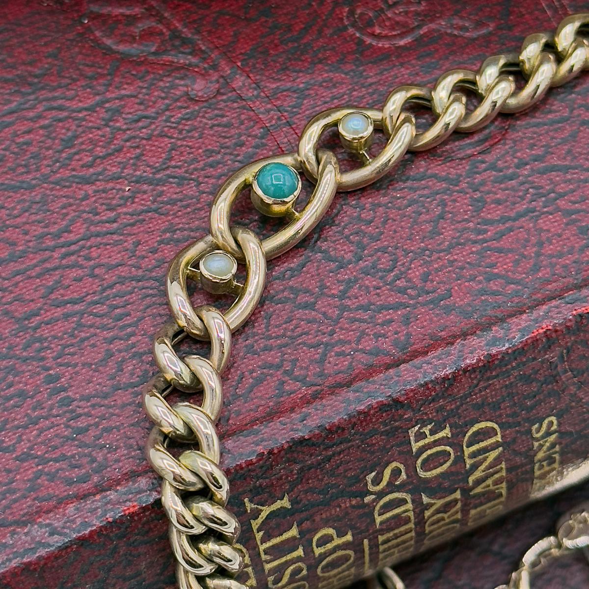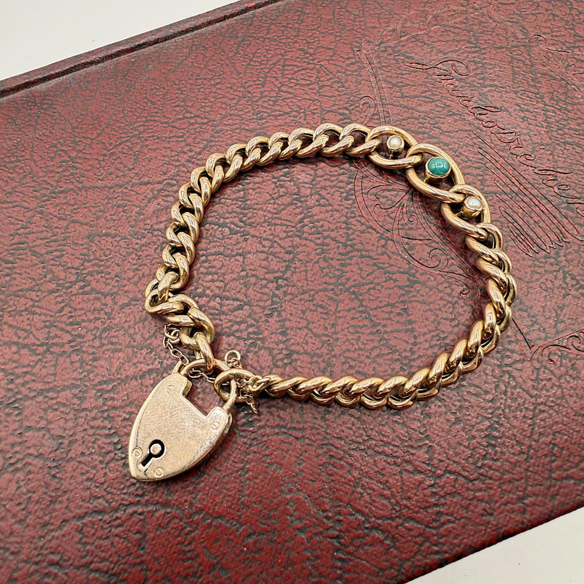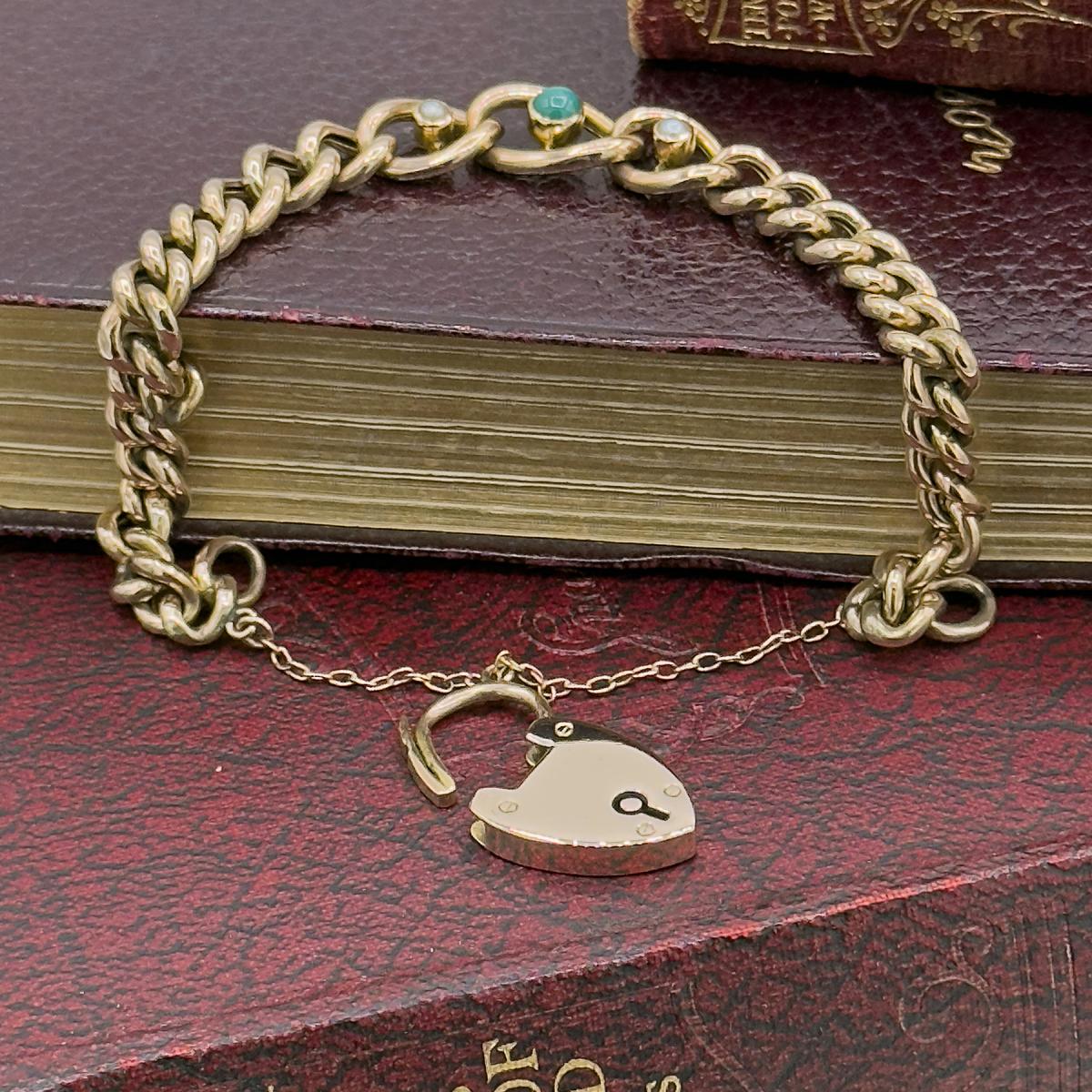 Victorian Turquoise and Seed Pearl Curb Bracelet With Padlock