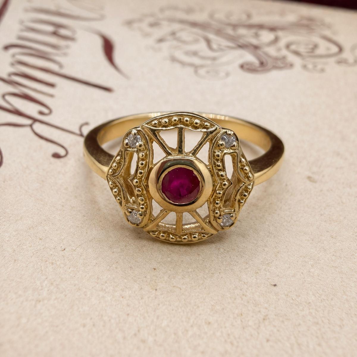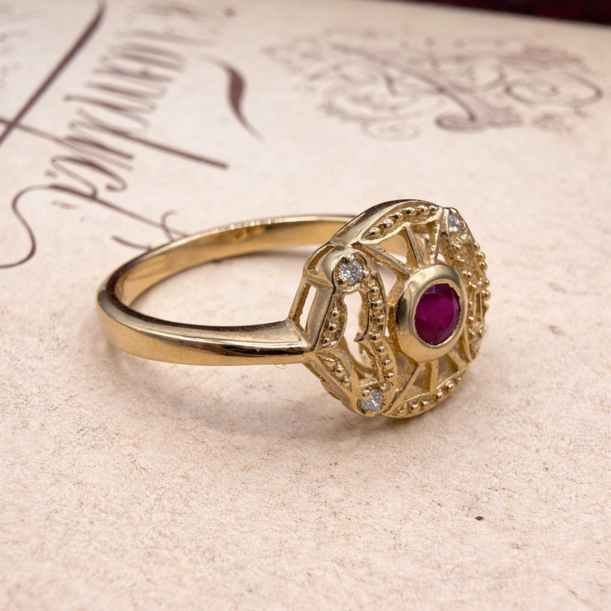Vintage Style Ruby & Diamond Openwork Ring