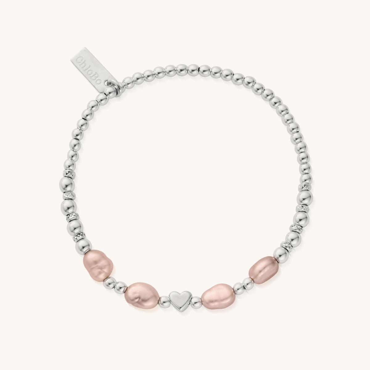 Soft pink baroque pearls glow gently around a central heart charm, creating a bracelet that celebrates love and compassion. Each pearl is naturally unique, making this piece a meaningful addition to your stack or a thoughtful gift to treasure.